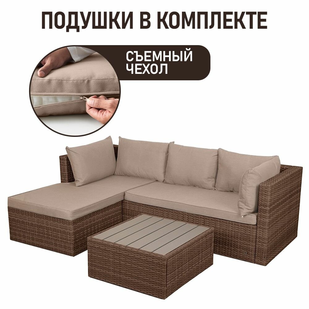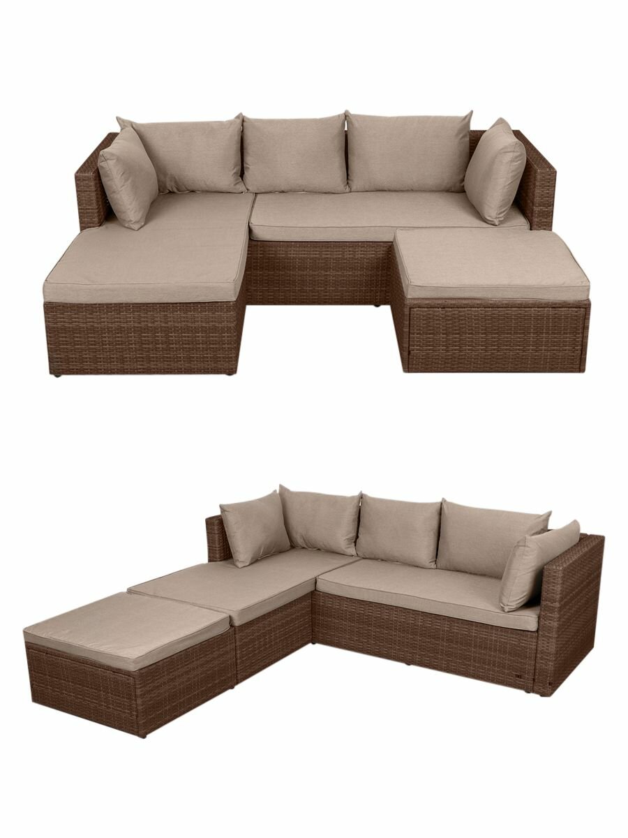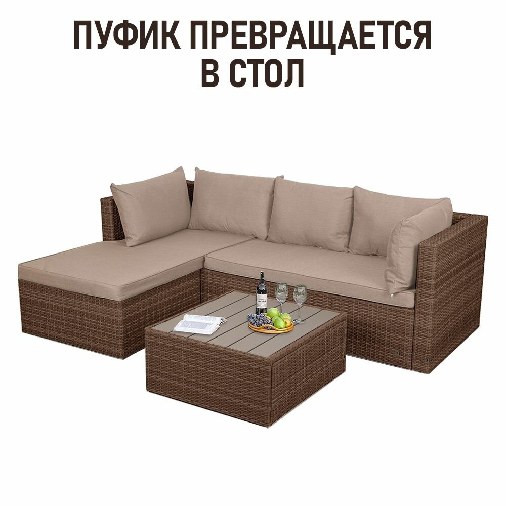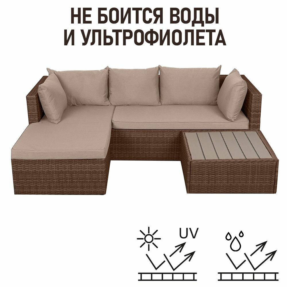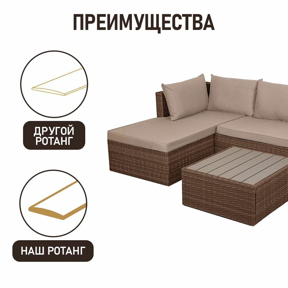 Комплект садовой мебели для дачи из ротанга Гардини. Левый угол, капучино