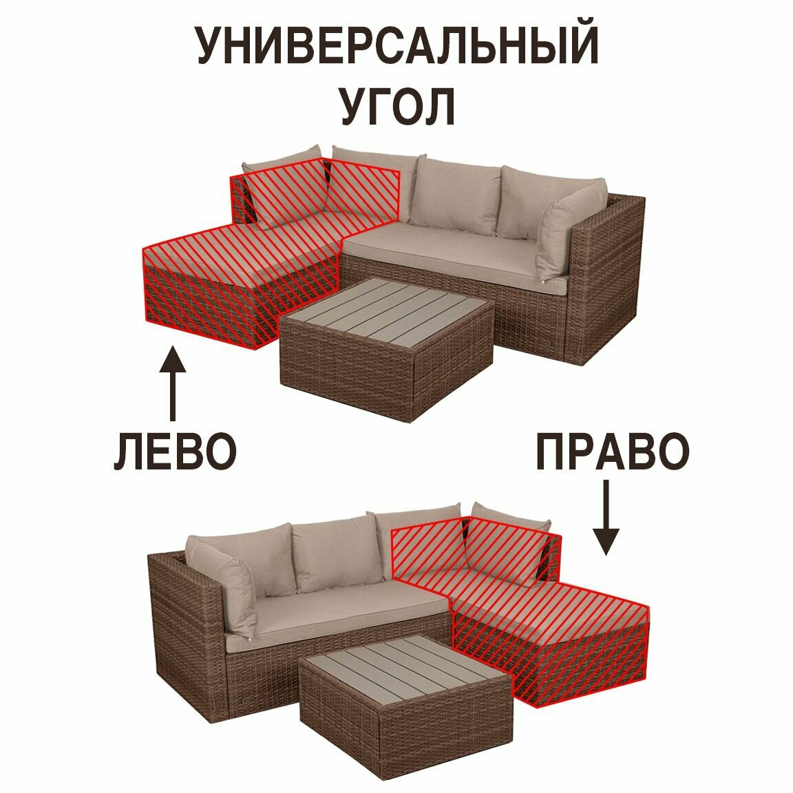 Комплект садовой мебели для дачи из ротанга Гардини. Правый угол, капучино