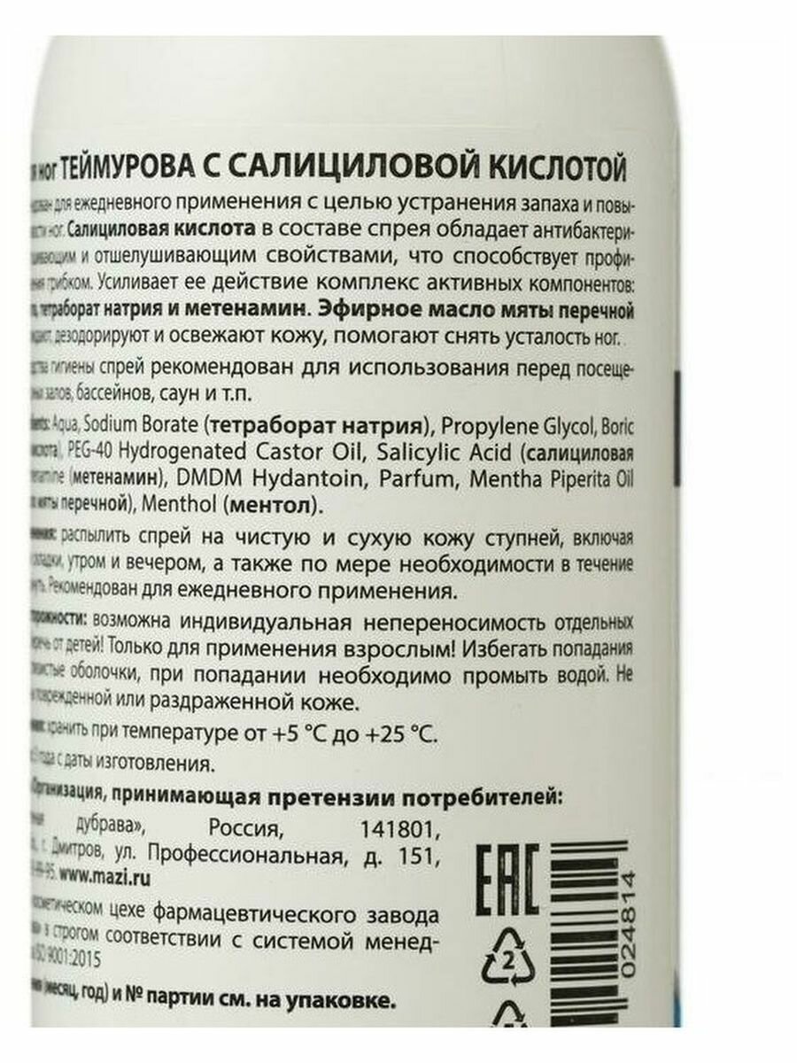 Спрей для ног Теймурова от запаха и пота, 150 мл