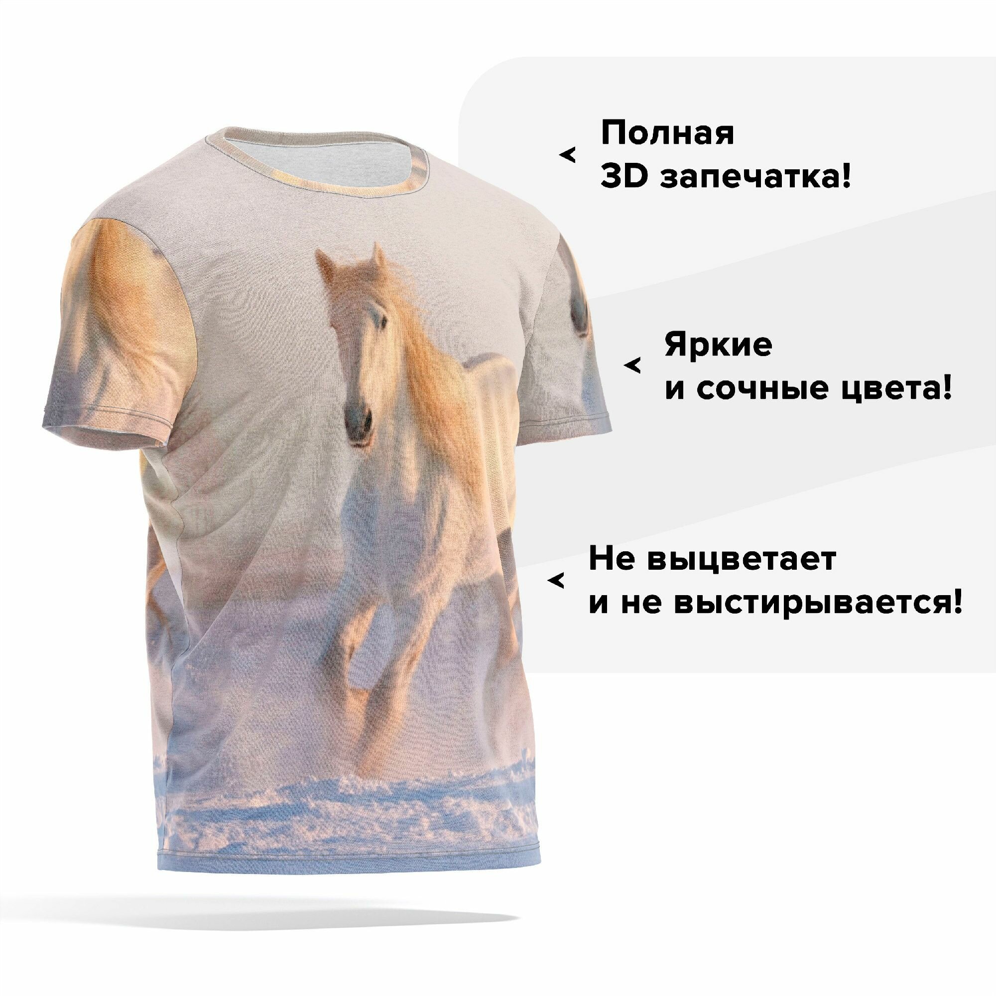 Футболка мужская 3D / Звери / Лошади Белая лошадь на снегу интересное: