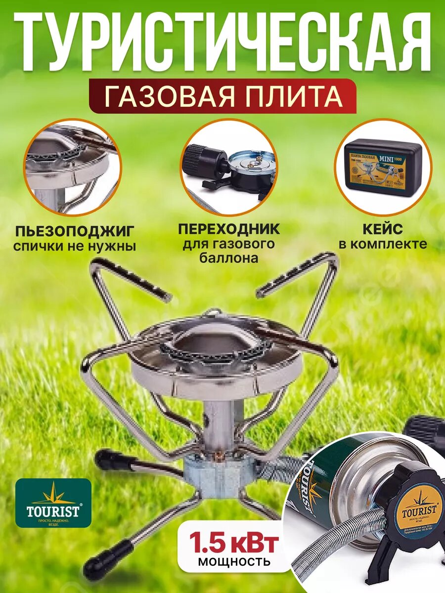 Газовая плита туристическая портативная походная TOURIST