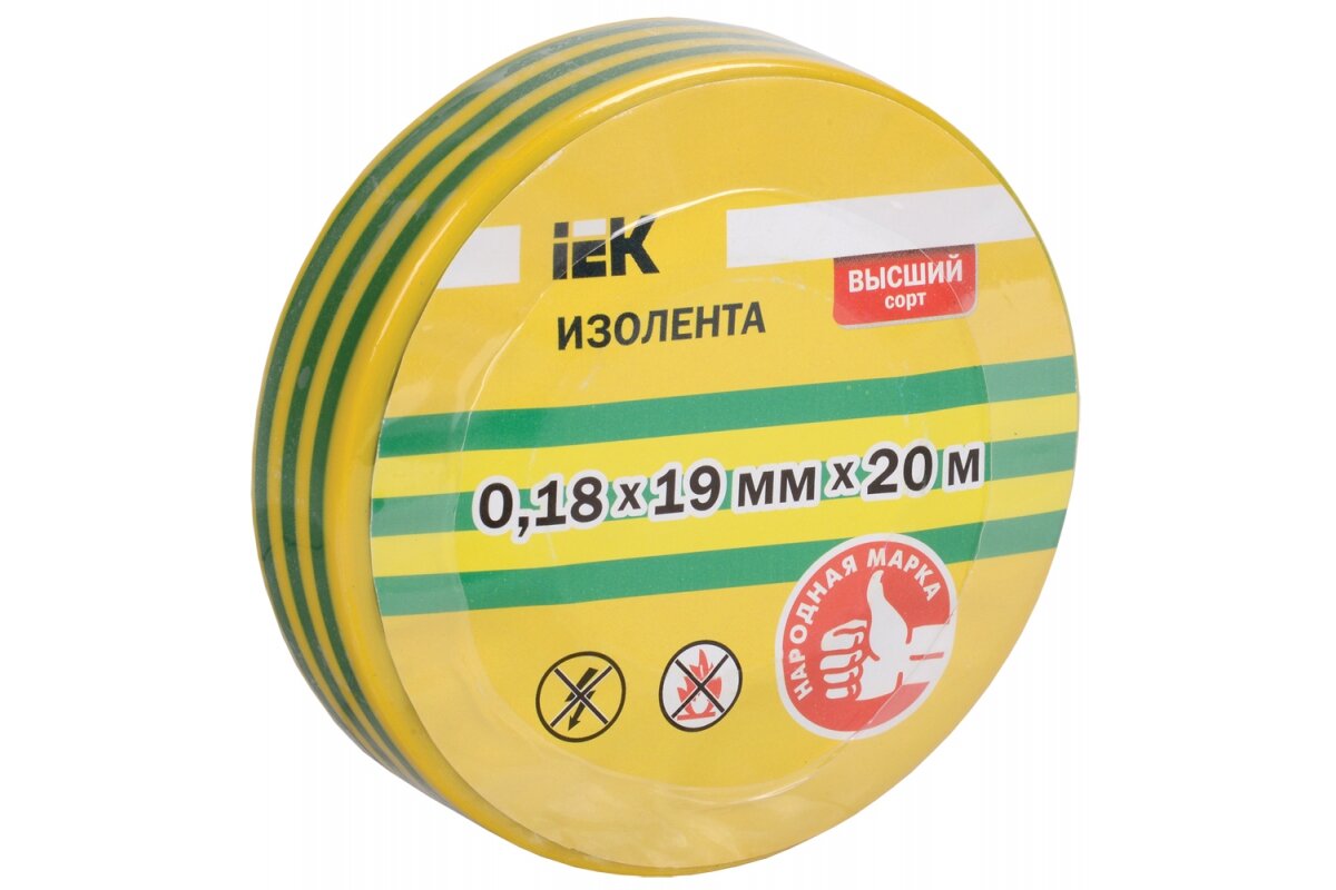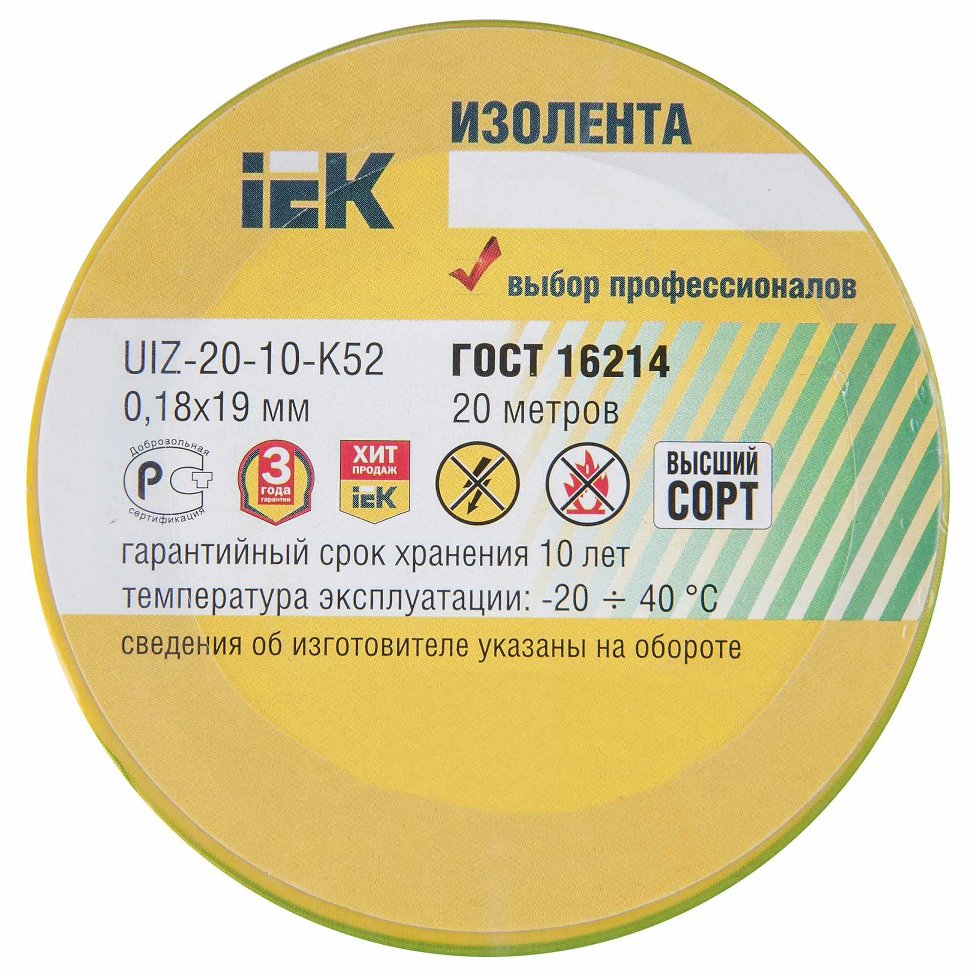Iek UIZ-20-10-K52 Изолента 0,18х19 мм желто-зеленая 20 метров ИЭК