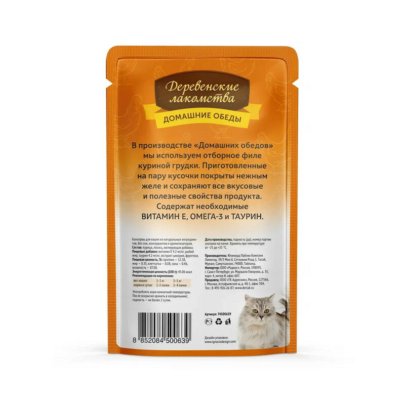 Влажный корм для кошек "Деревенские лакомства" с курицей в нежном соусе, 70гр.*12шт.
