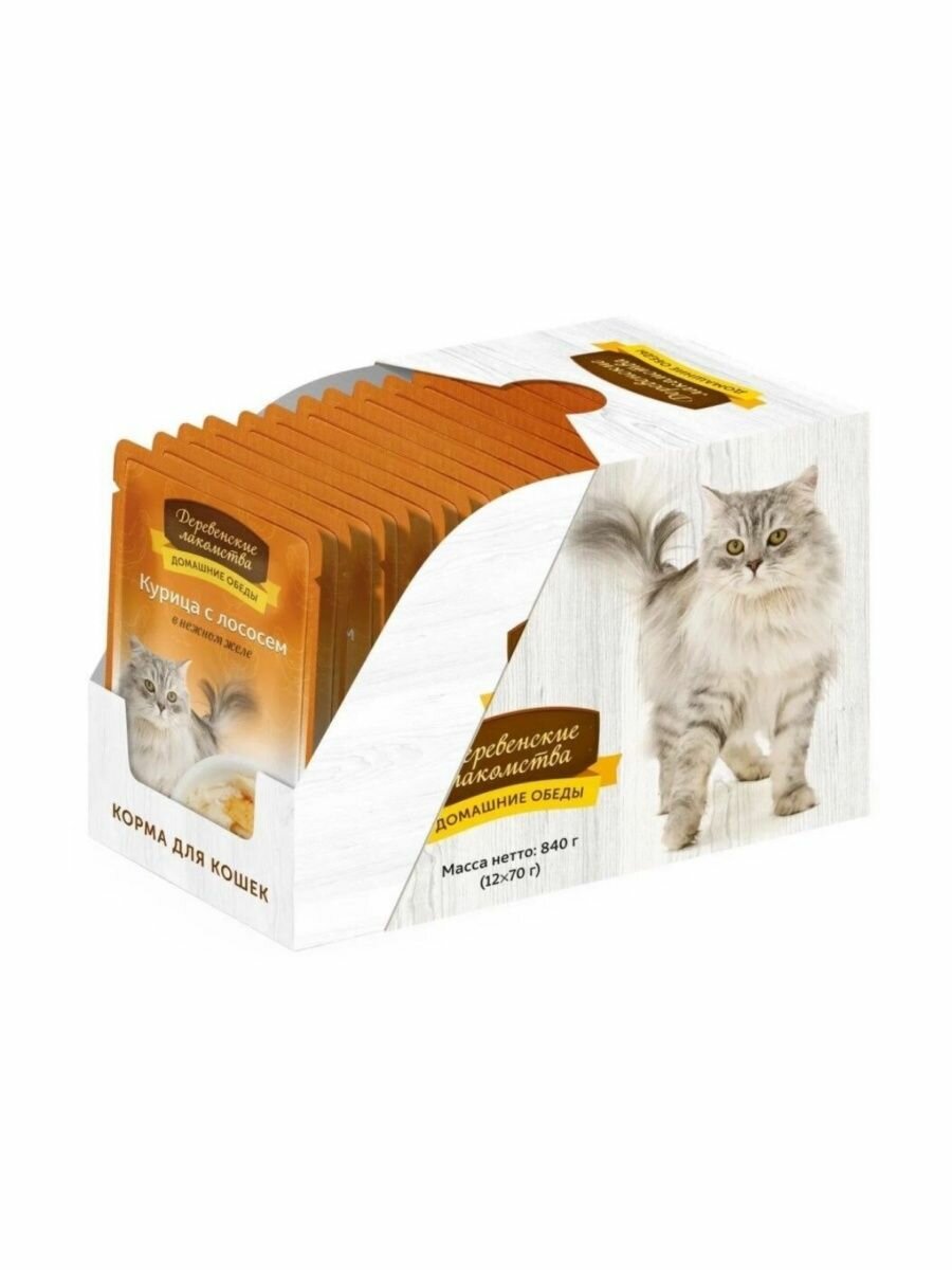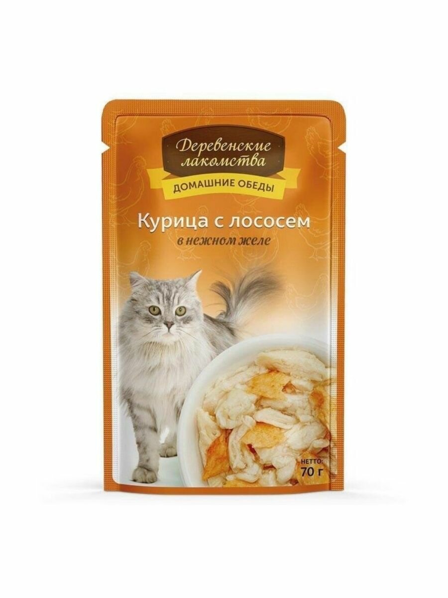 Купить Влажный корм для кошек "Деревенские лакомства" курица с лососем в нежном желе 70 гр.*12 шт.
