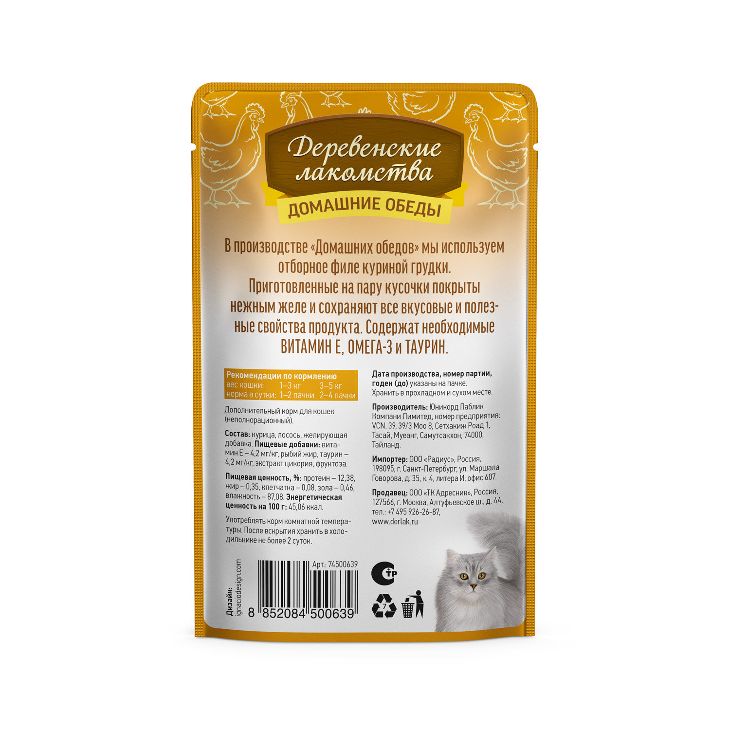 Деревенские Лакомства пауч 70гр д/котят Цыпленок/Паштет 12 штук Х 70гр.