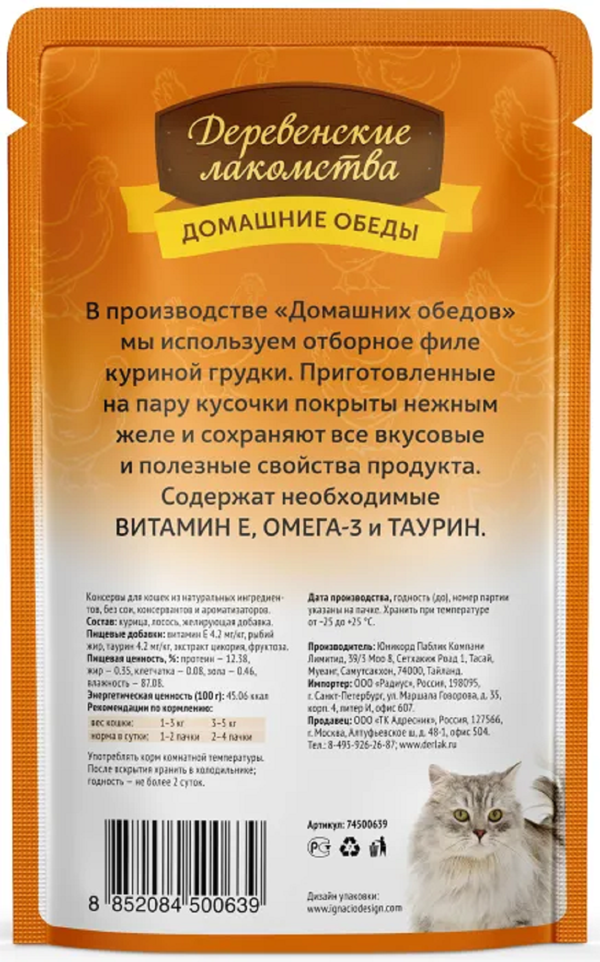 Деревенские лакомства: Домашние обеды: отборный цыпленок. Паштет для котят, 70 гр. пауч