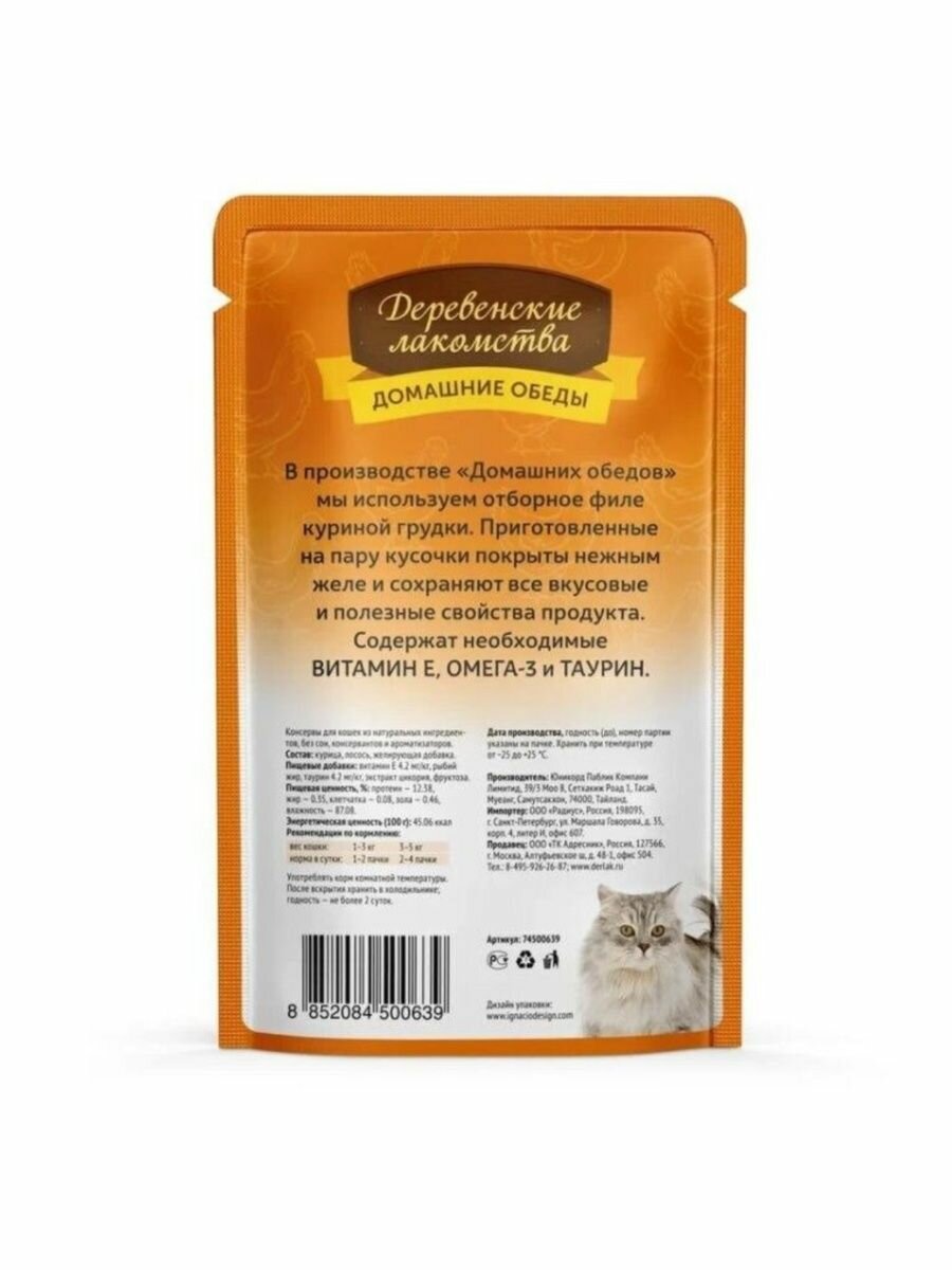 Влажный корм для котят Деревенские лакомства Домашние обеды, беззерновой, с курицей 70гр×12шт ×1уп.