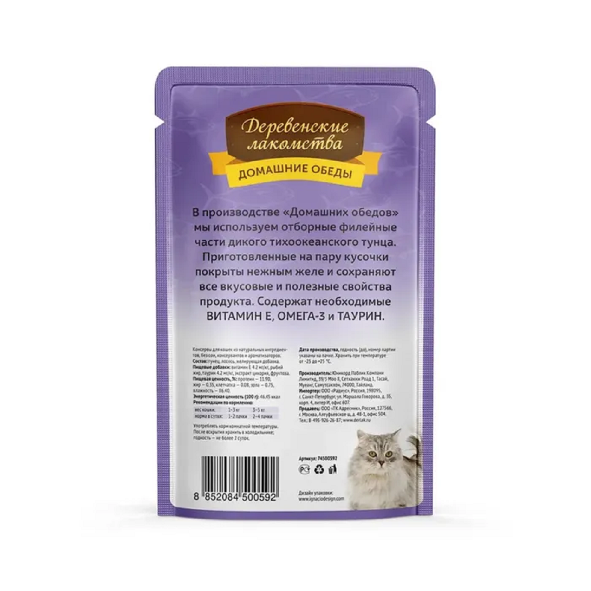 СохранитьВлажный корм Деревенские Лакомства для взрослых кошек тунец с лососем в нежном желе (пауч), 12 шт 70 г интересное: