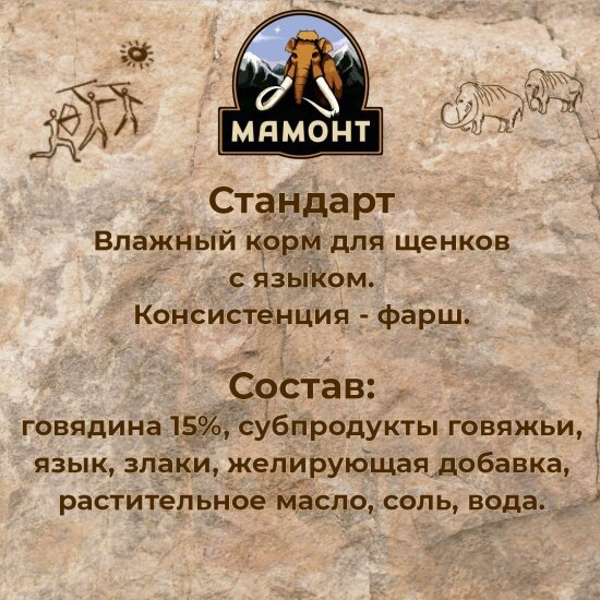 СохранитьВлажный корм для щенков с языком, Мамонт Стандарт, 970 г интересное: