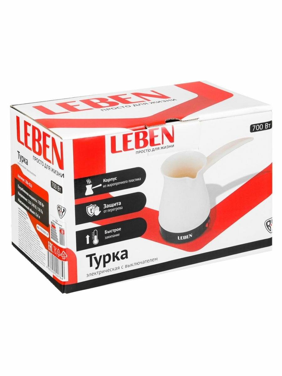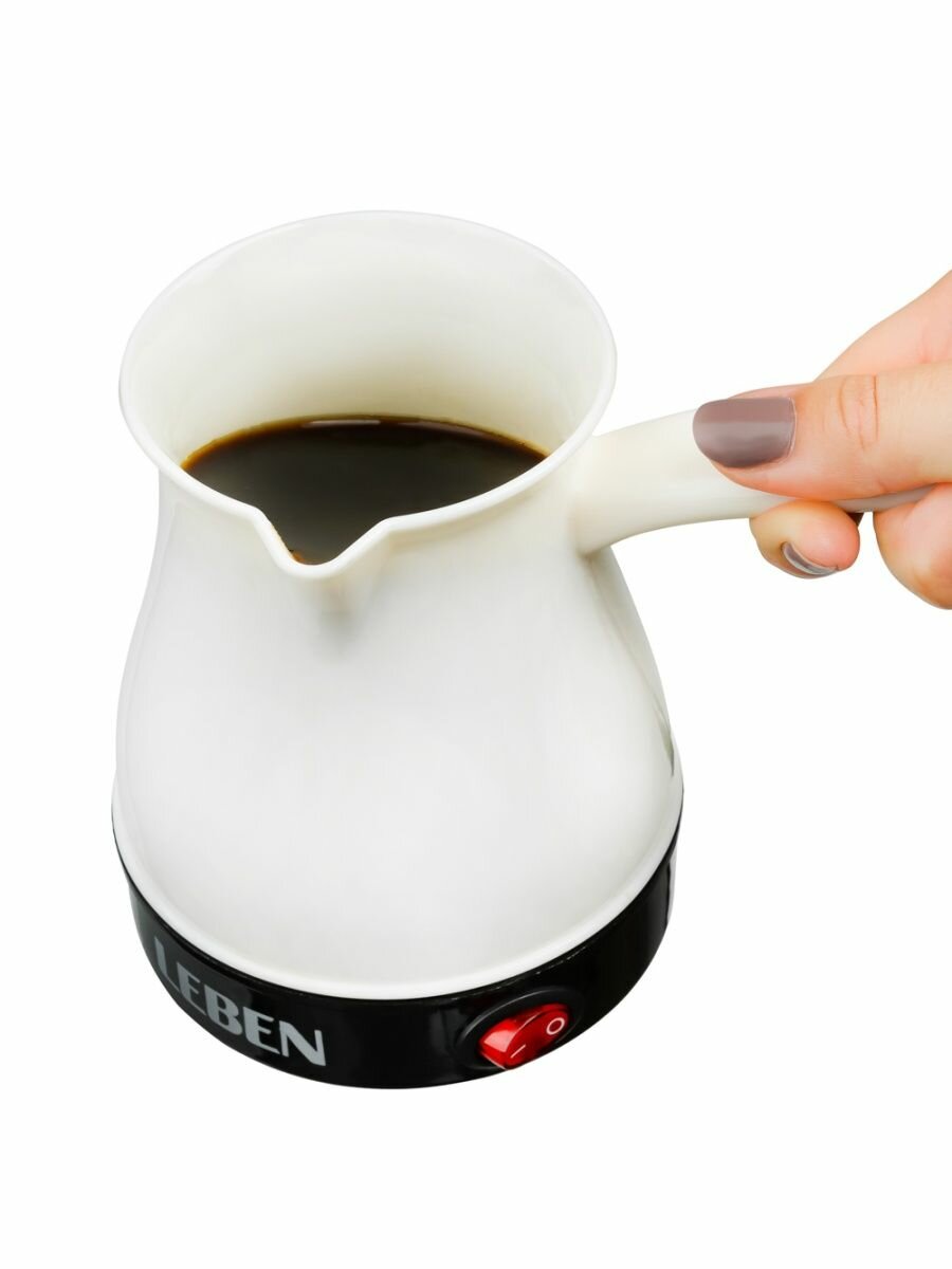 Турка электрическая LEBEN с выключателем 0, 4л, 700Вт, молочный цвет, пластик