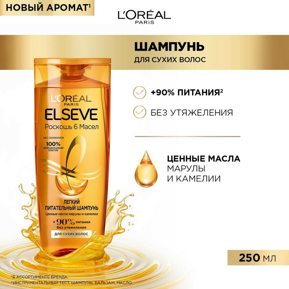L'Oreal Paris шампунь Elseve Роскошь 6 масел Легкий Питательный для волос, нуждающихся в питании, 250 мл