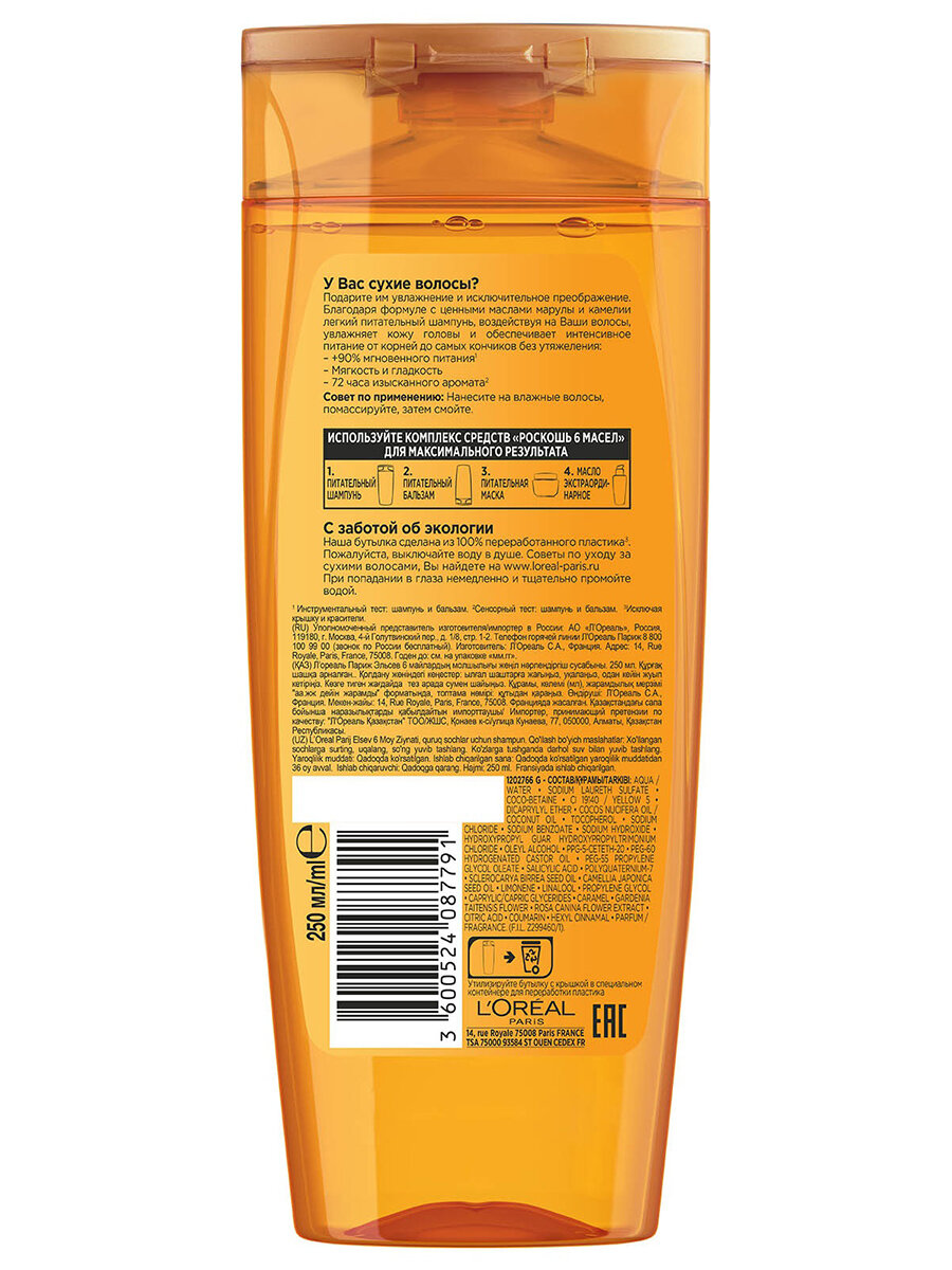 Loreal Elseve Шампунь для волос Роскошь питания 6 масел 250 мл 1 шт