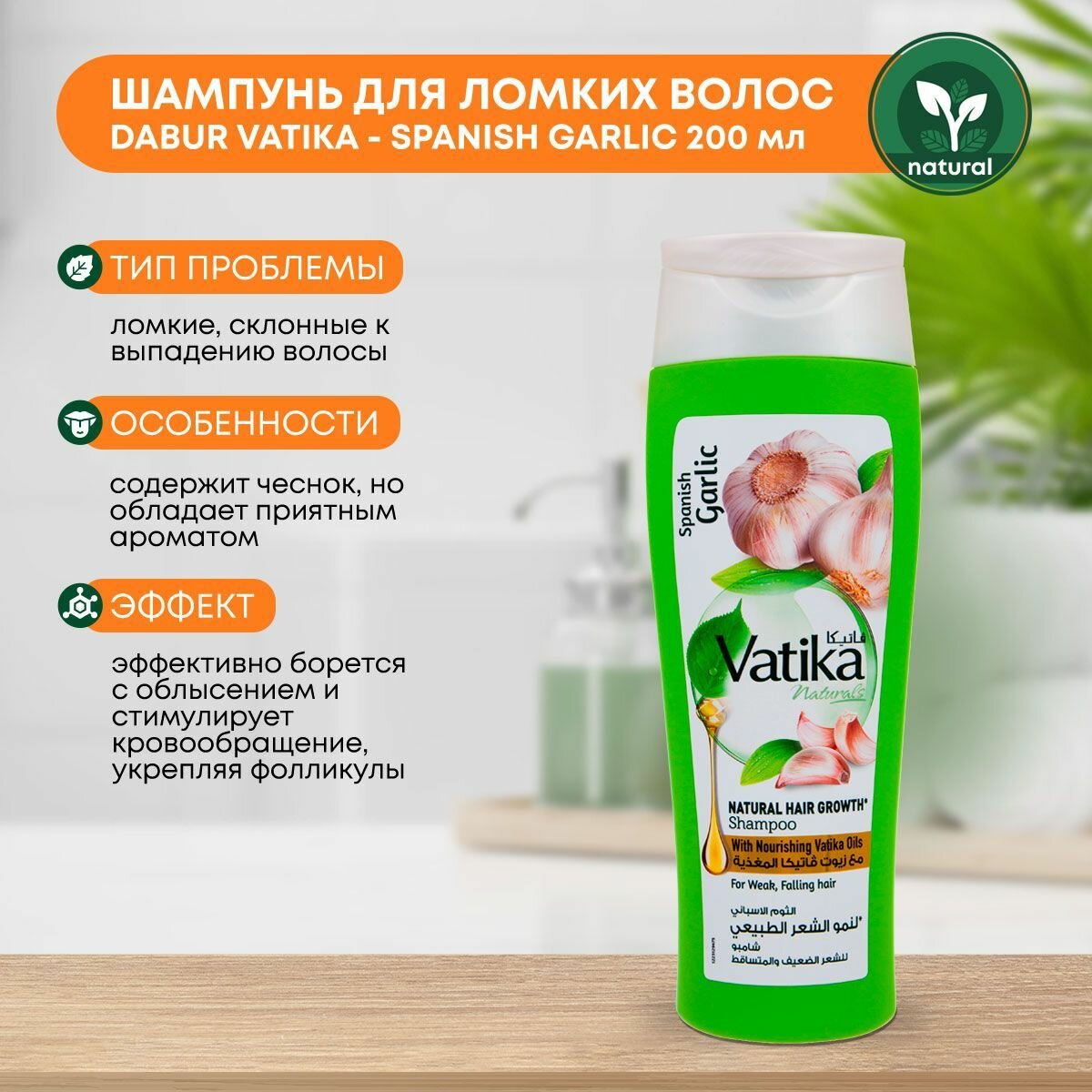 Шампунь для волос VATIKA GARLIC для ломких и выпадающих волос, 200 мл