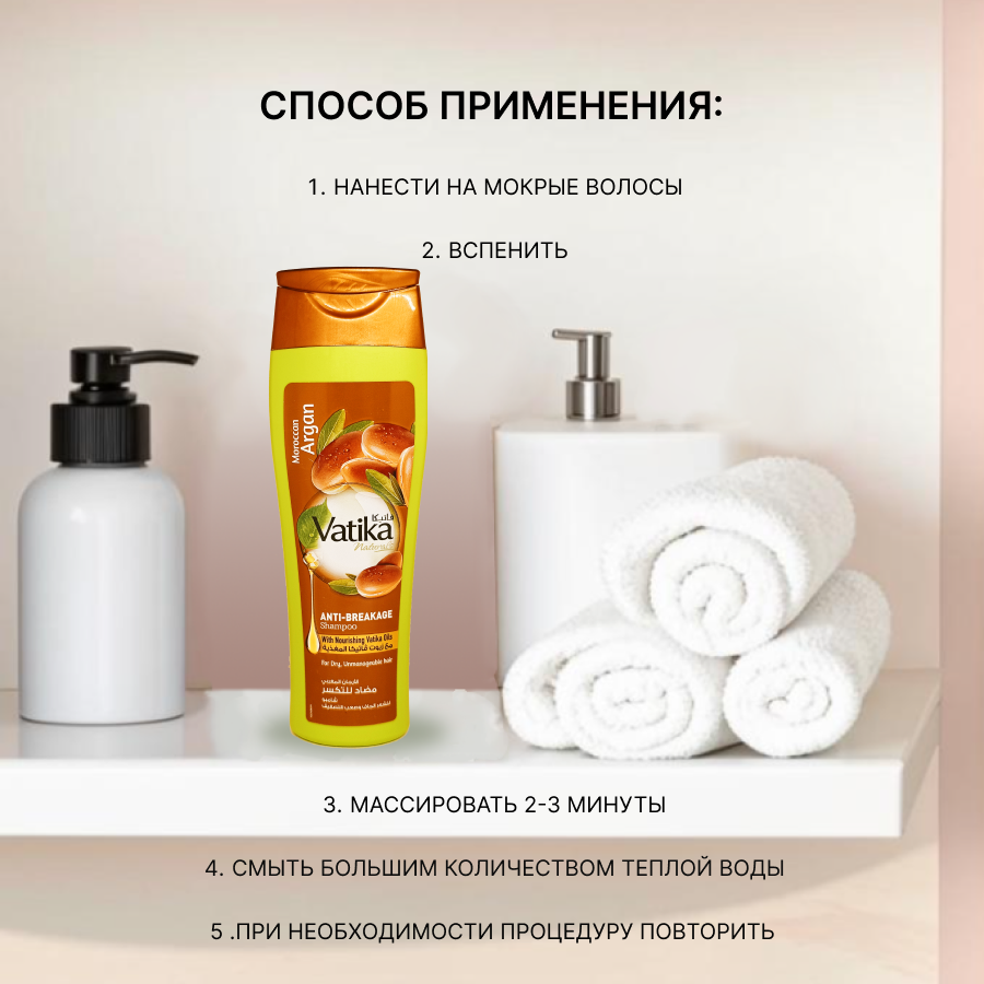 Vatika / Dabur / Шампунь /с аргановым маслом / Мягкое увлажнение/ 200 мл/ОАЭ