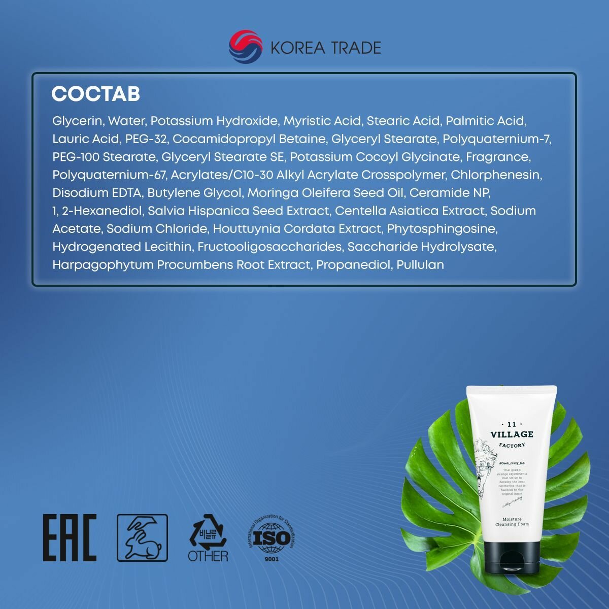 Village 11 Factory Moisture Cleansing Foam 150 мл Увлажняющая пенка с экстрактом корня когтя дьявола