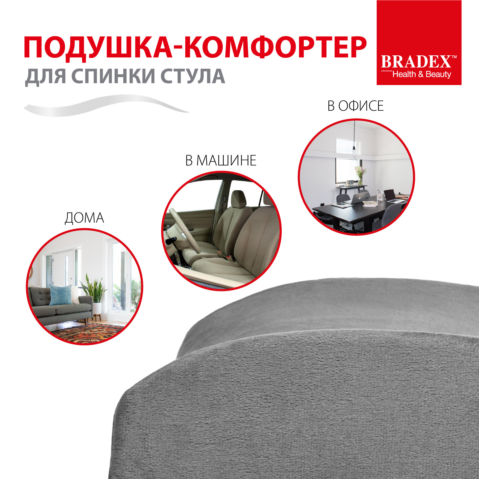 СохранитьПодушка на стул и кресло офисное BRADEX, анатомическая под поясницу, 33х35х12см интересное: