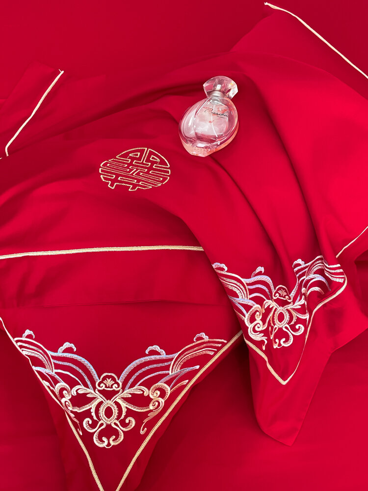 Купить Свадебный комплект постельного белья "Роскошный красный", стеганое одеяло, 4 предмета