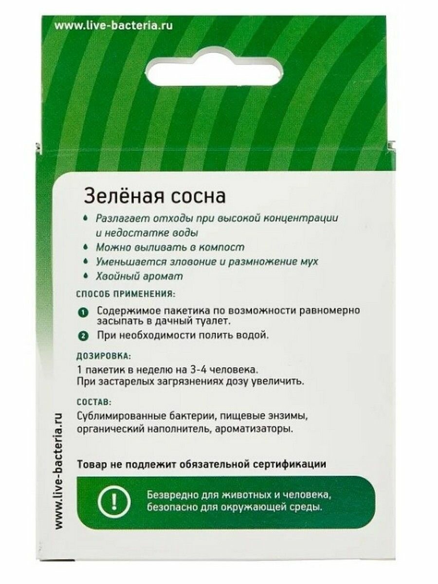 Живые бактерии Биоактиватор для выгребных ям Зеленая сосна 12 шт.