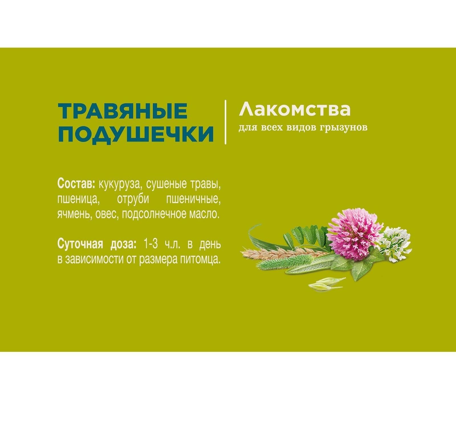 СохранитьLittle One Травяные подушечки - лакомство для всех видов грызунов, 0,1 кг, 40071 интересное: