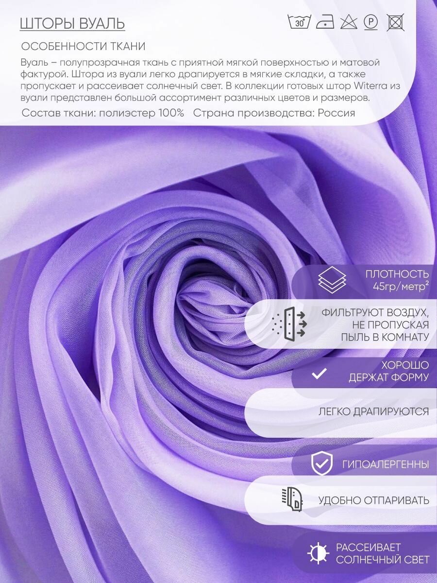 Штора-вуаль Witerra тюль на шторной ленте, для потолочного и круглого карнизов 140х180 см, сирень, 1 шт.