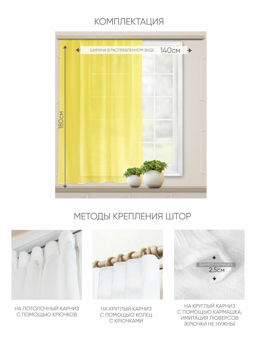 СохранитьШтора-тюль для кухни 140х180 см, цвет светло-жёлтый, вуаль, п/э100% интересное: