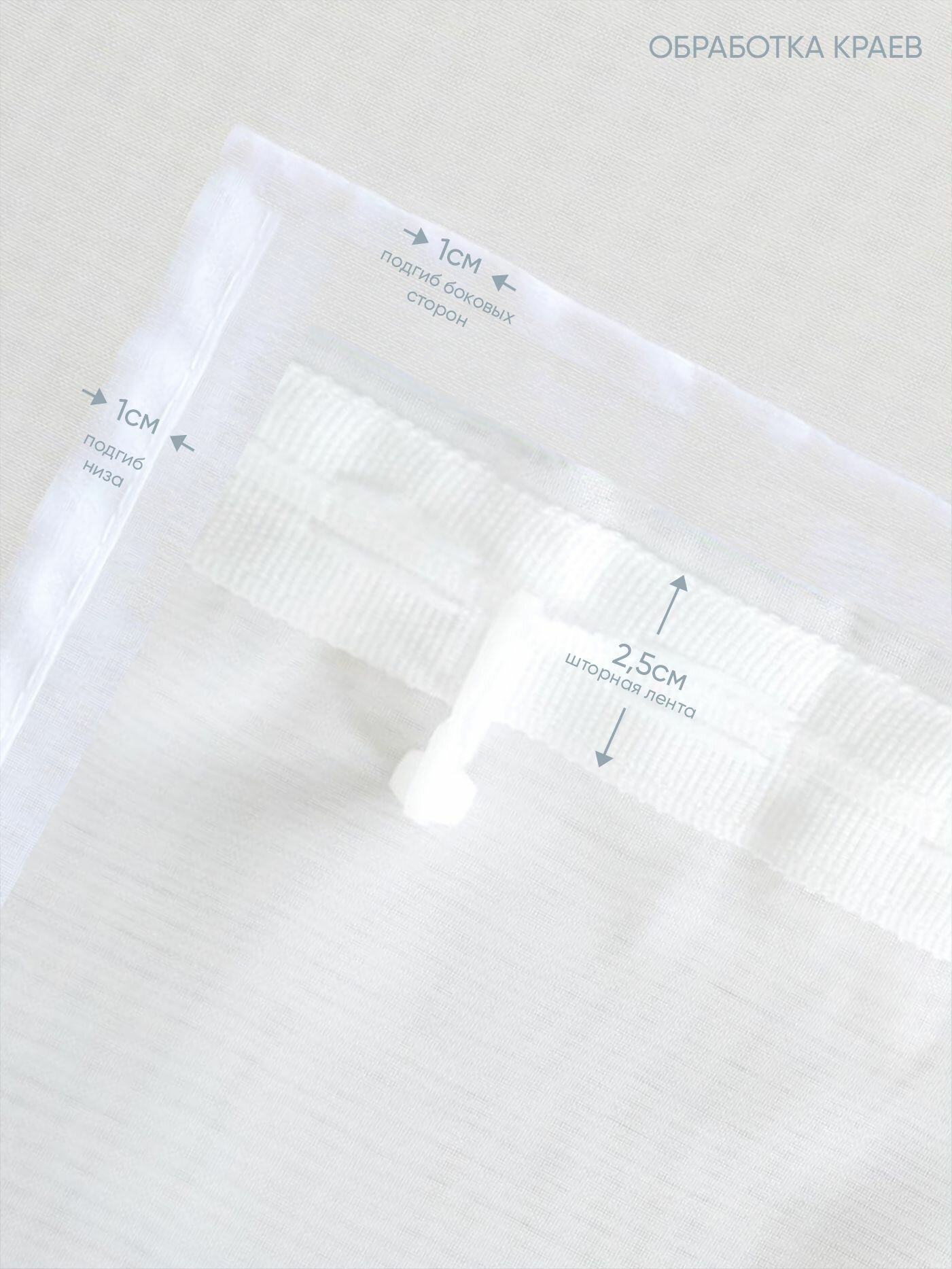 | Плюсы: | Отличная вуаль со шторной лентой, прошито качественно, неплохая обработка края. |