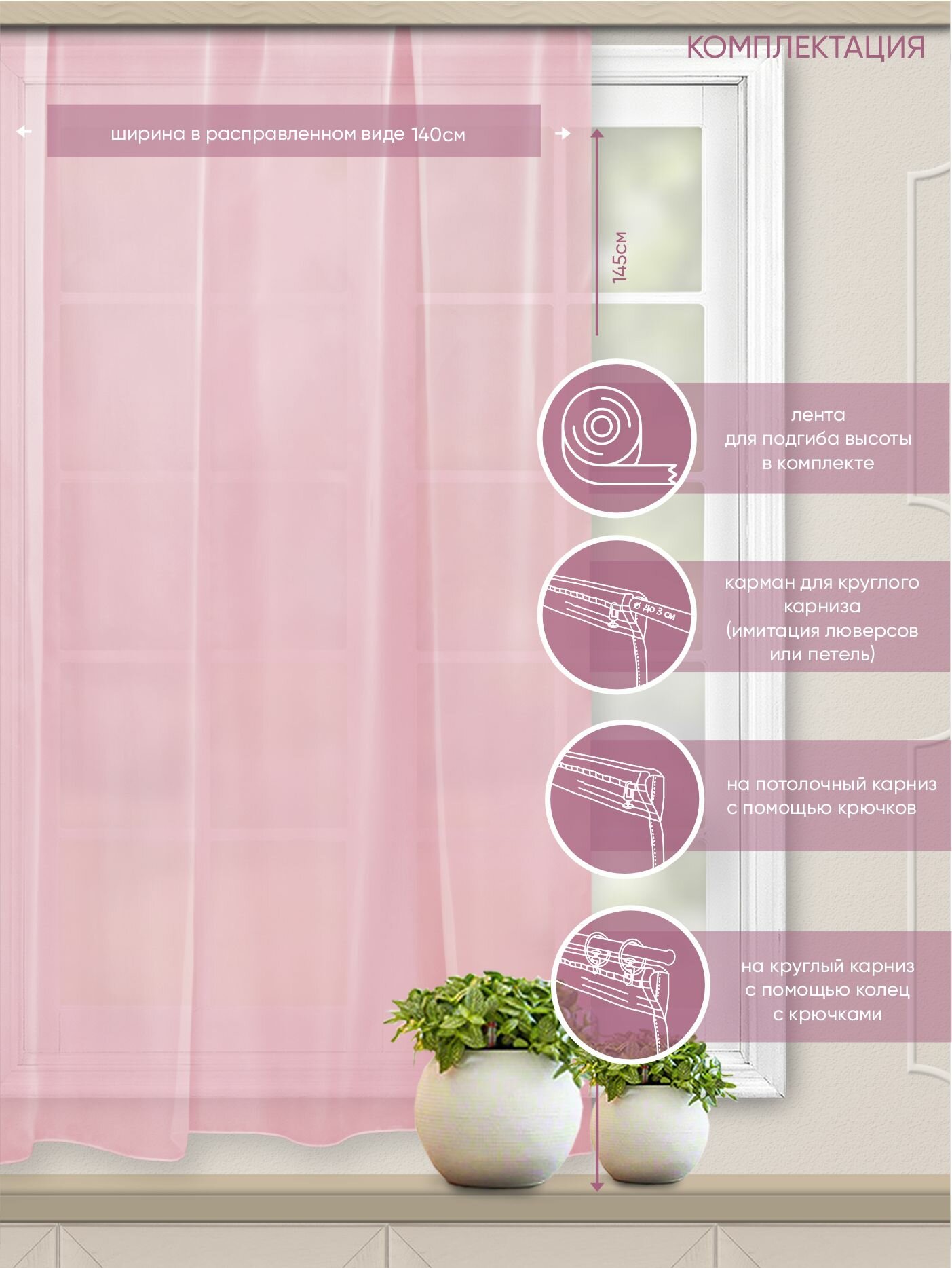 Штора вуаль однотонная 140 145 см, цвет персик, 100 п/э