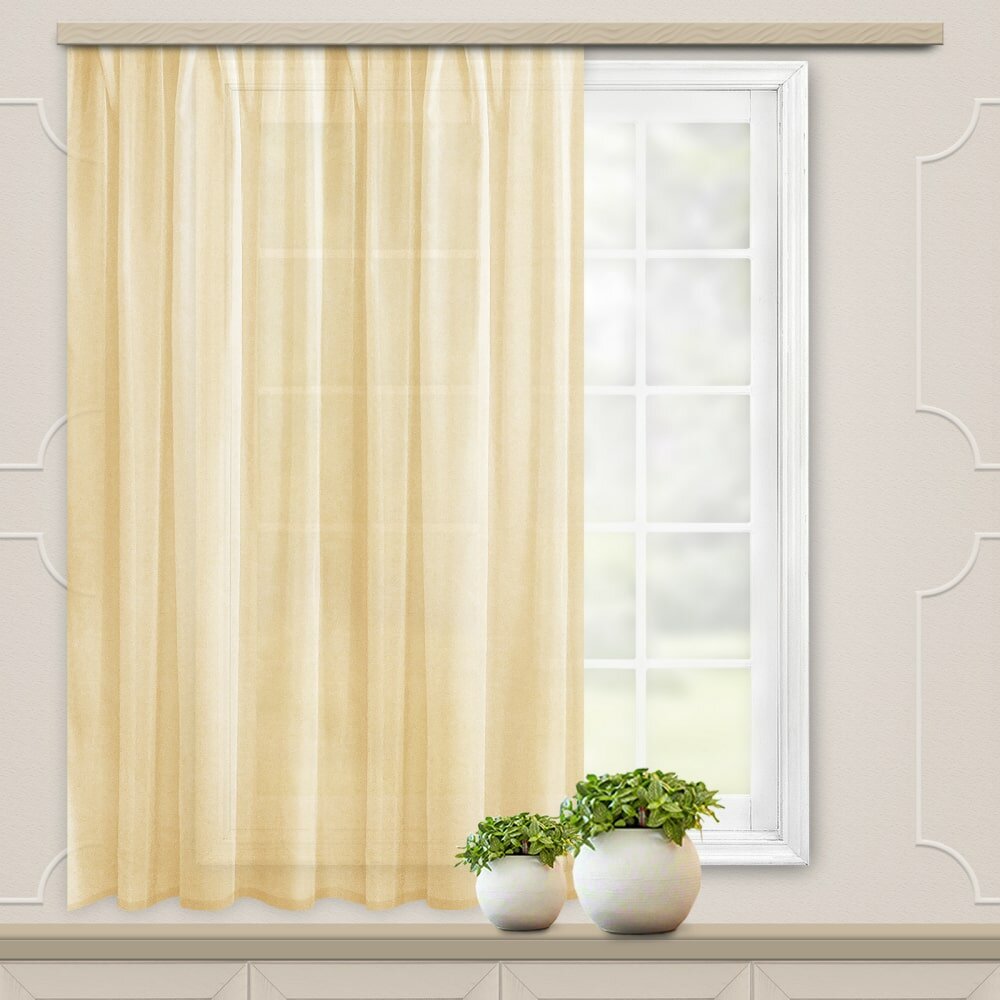 Штора-тюль для кухни 140х180 см, цвет светло-жёлтый, вуаль, п/э100%