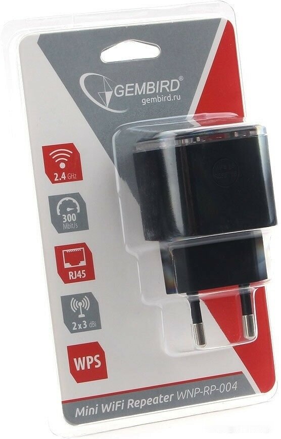 Усилитель сигнала Wi-Fi Gembird WNP-RP-004-B, 300 Мбит, черный