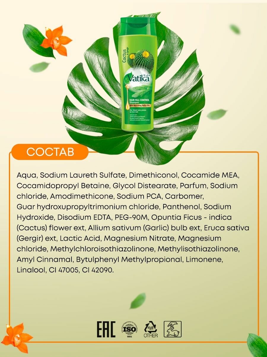 Vatika шампунь Cactus & Gergir Hair fall control, 400 мл +33%