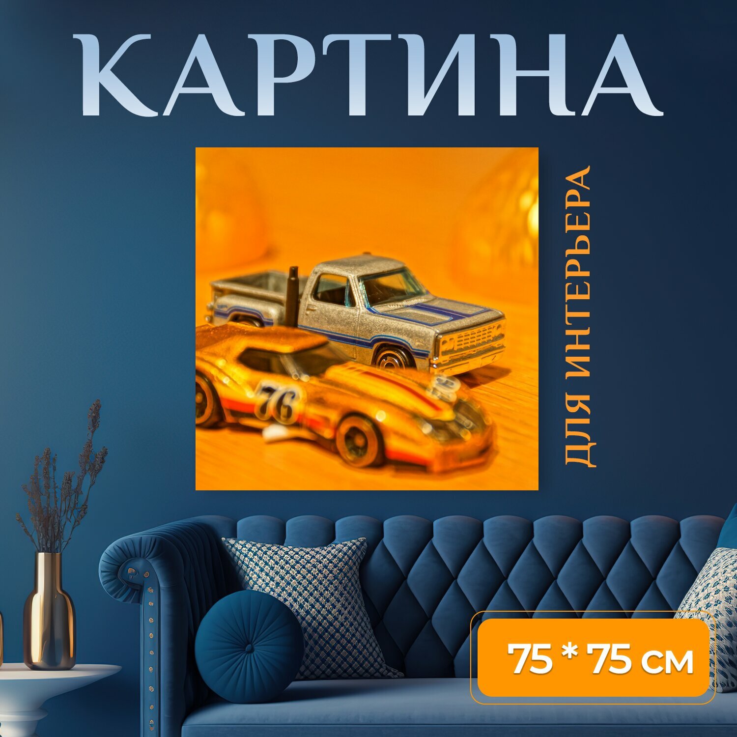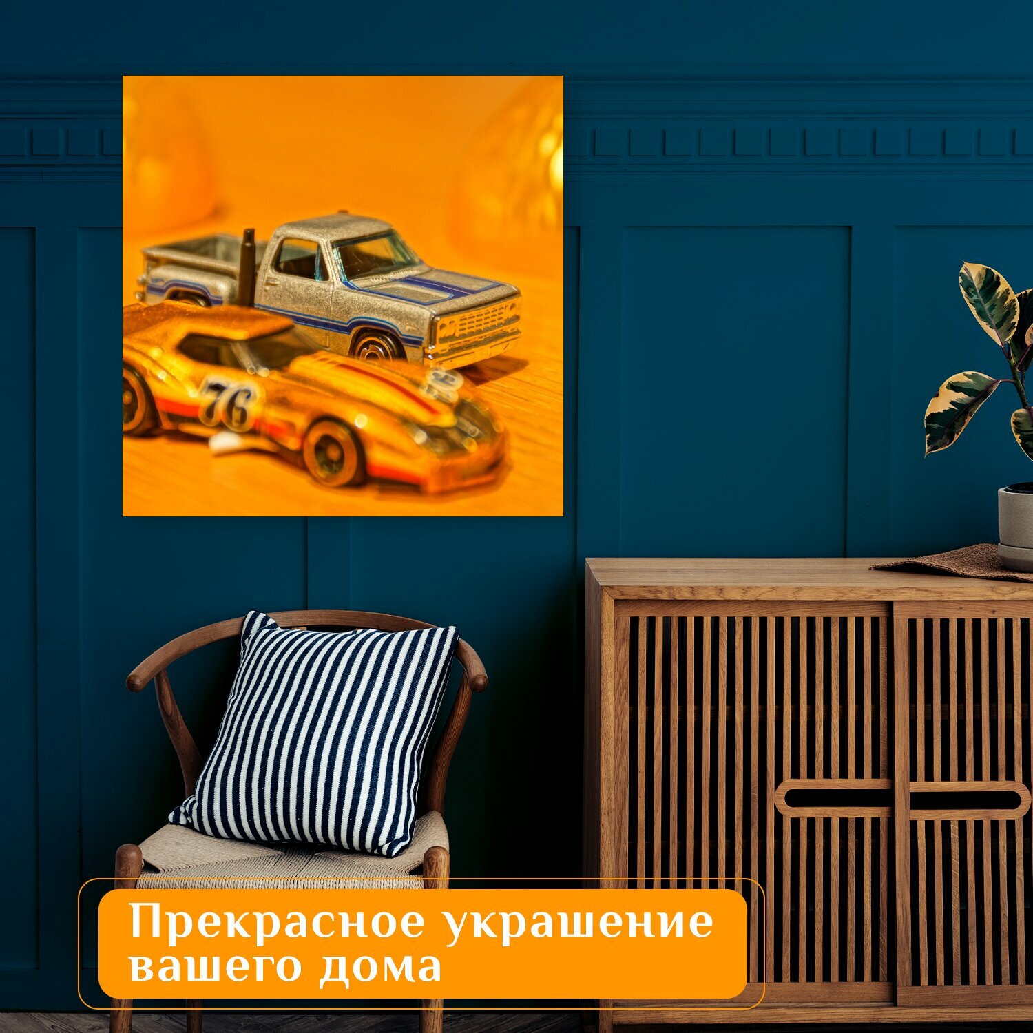 Купить Картина на холсте "Автомобиль игрушки, модель автомобиля, золото" на подрамнике 75х75 см. для интерьера