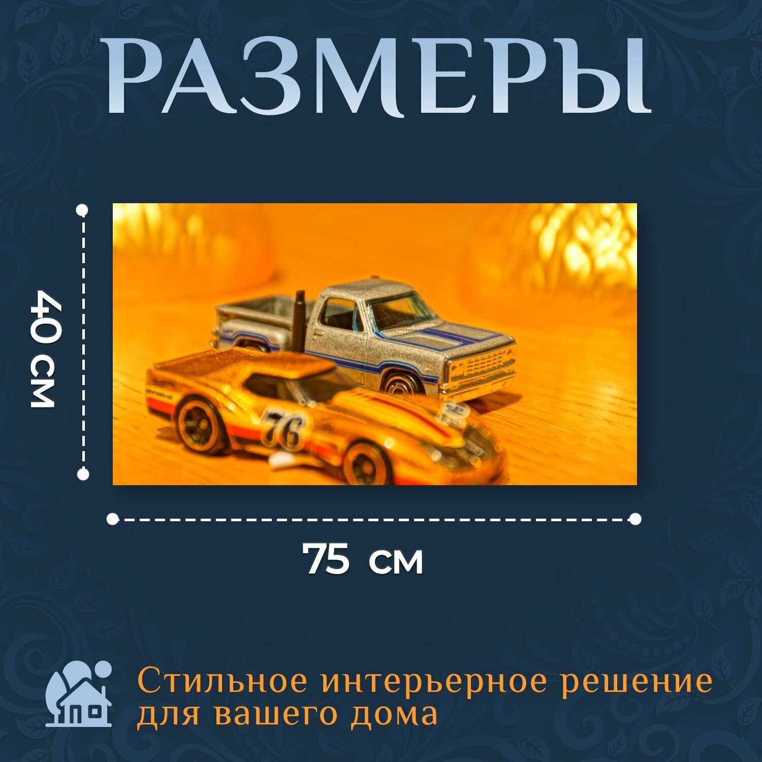 Купить Картина на холсте "Автомобиль игрушки, модель автомобиля, золото" на подрамнике 75х40 см. для интерьера