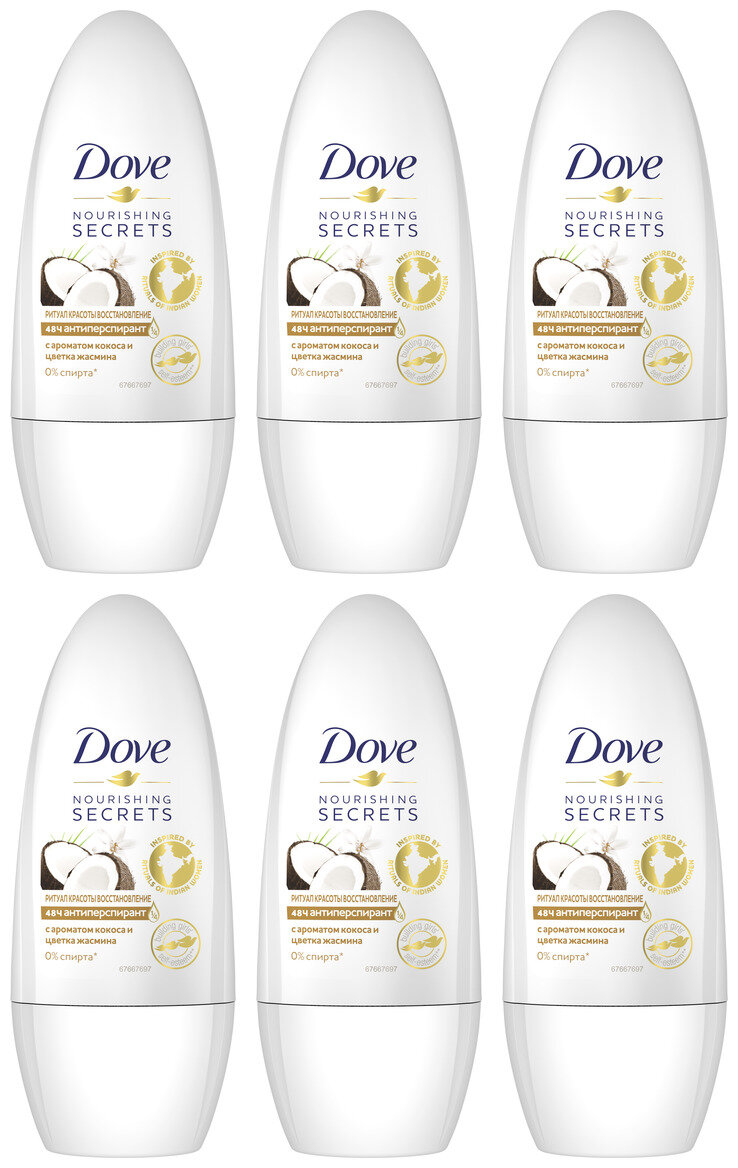 Купить Dove Дезодорант антиперспирант роликовый Ритуал красоты "Восстановление", 50 мл, 6 шт.
