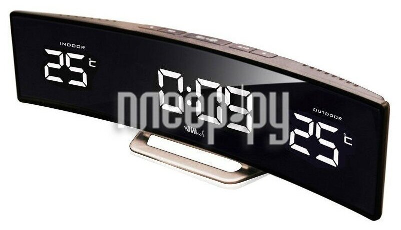 | Плюсы: | Мне понравился дизайн и качество сборки - есть металлические детали. Изогнутая форма вписалась под телевизор! Цифры большие и яркие! Пока прибор показывает точное время, погоду иногда за бортом завышает ... |