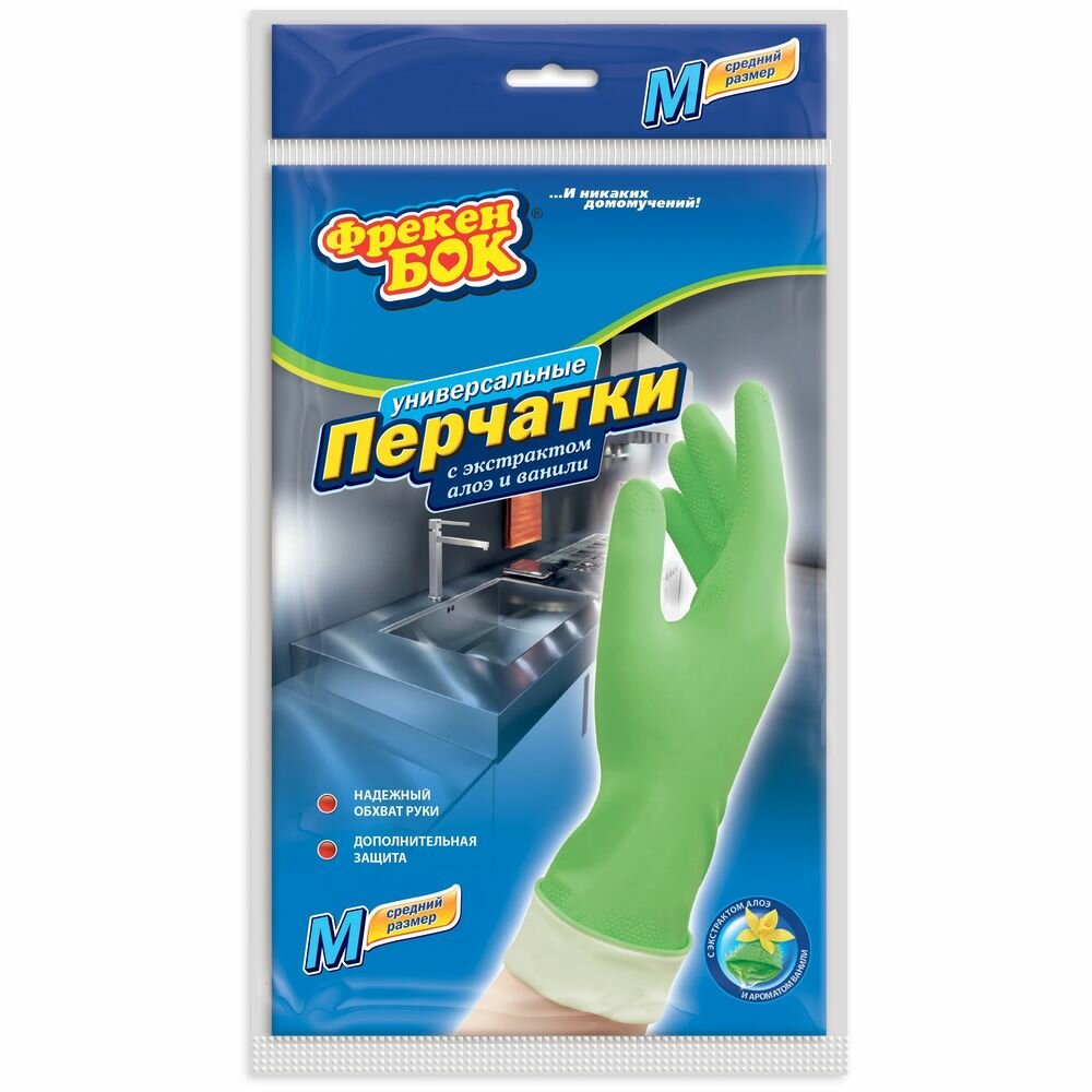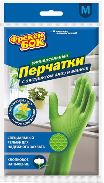 Купить Перчатки хозяйственные Фрекен Бок Универсальные, с экстрактом Алоэ и ванили, размер М (17105340)