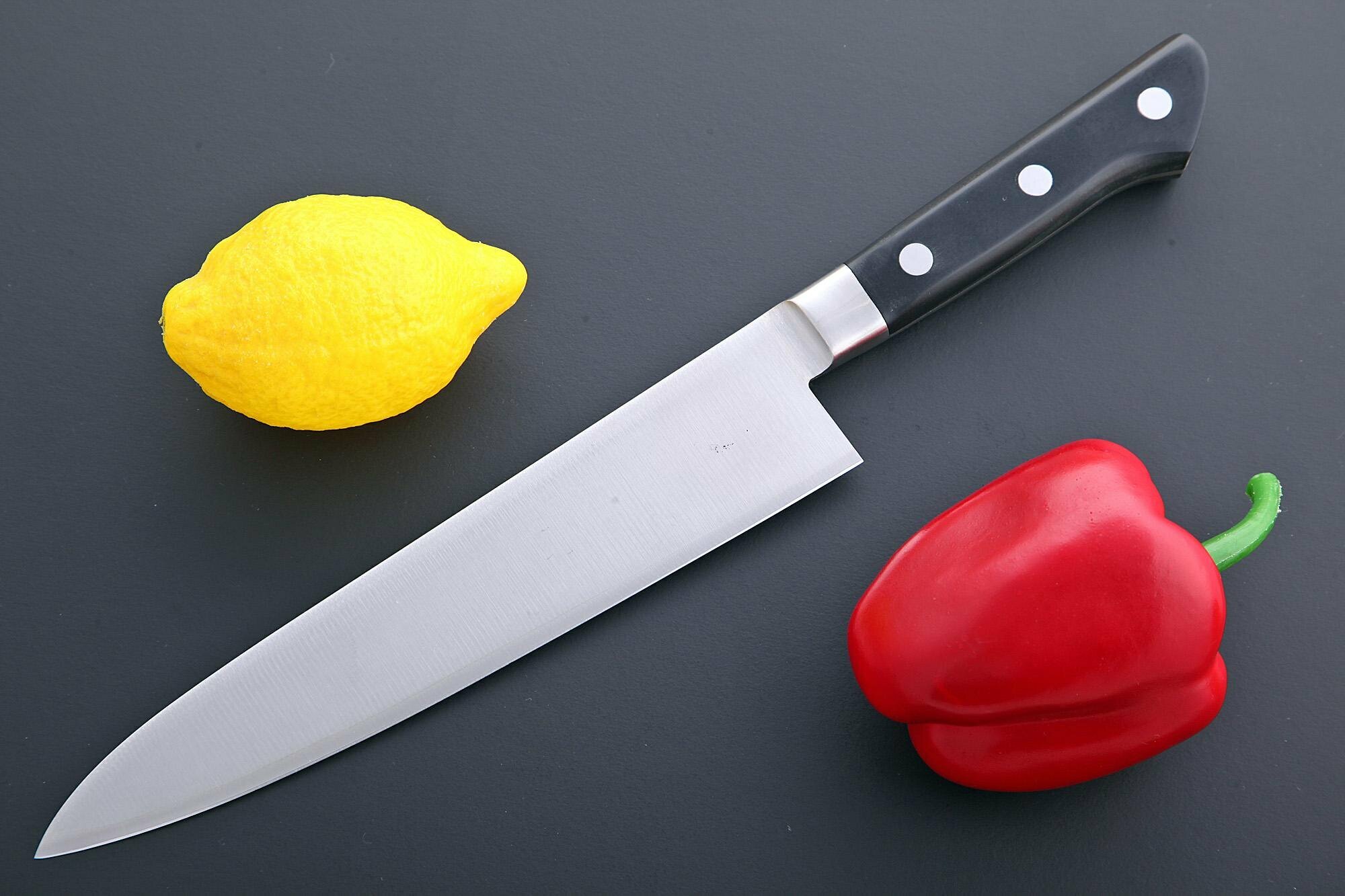 Ниже Вы можете прочитать отзывы на TOJIRO Нож кухонный поварской western, длина лезвия 210 мм, сталь vg10, 3 слоя, рукоять стабилизированная эко-древесина F-808, ознакомится с подробными характеристиками, посмотреть интересные обзоры и фотографии на TOJIRO Нож кухонный поварской western, длина лезвия 210 мм, сталь vg10, 3 слоя, рукоять стабилизированная эко-древесина F-808.