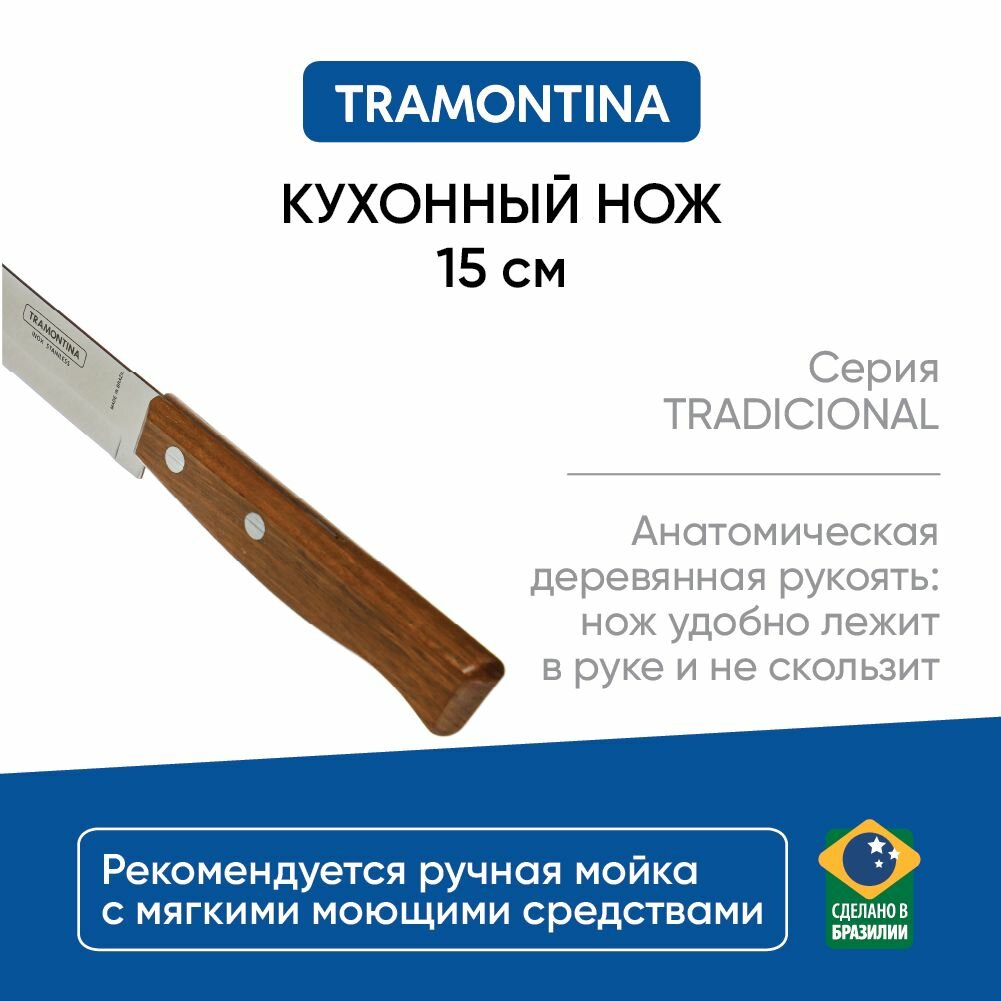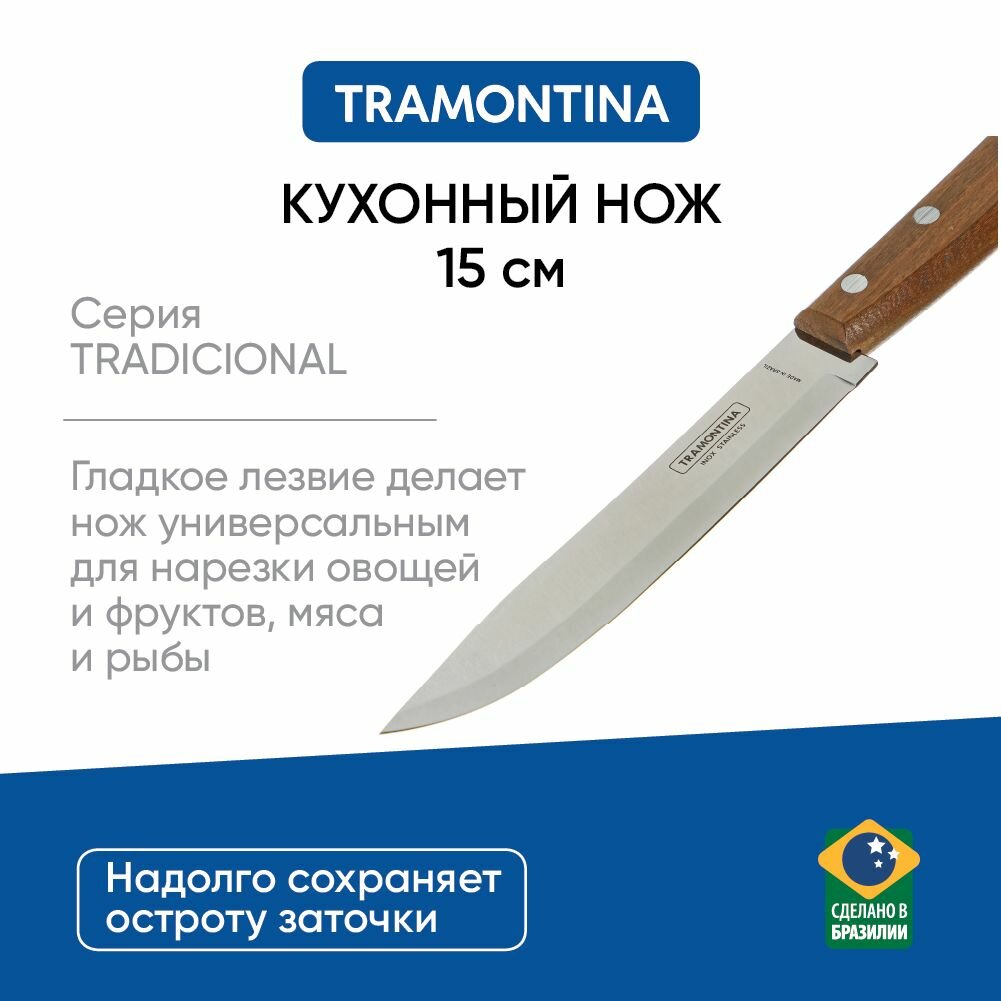 Нож кухонный универсальный 15 см Tramontina Tradicional, нож для мяса, рыбы, 22216/006