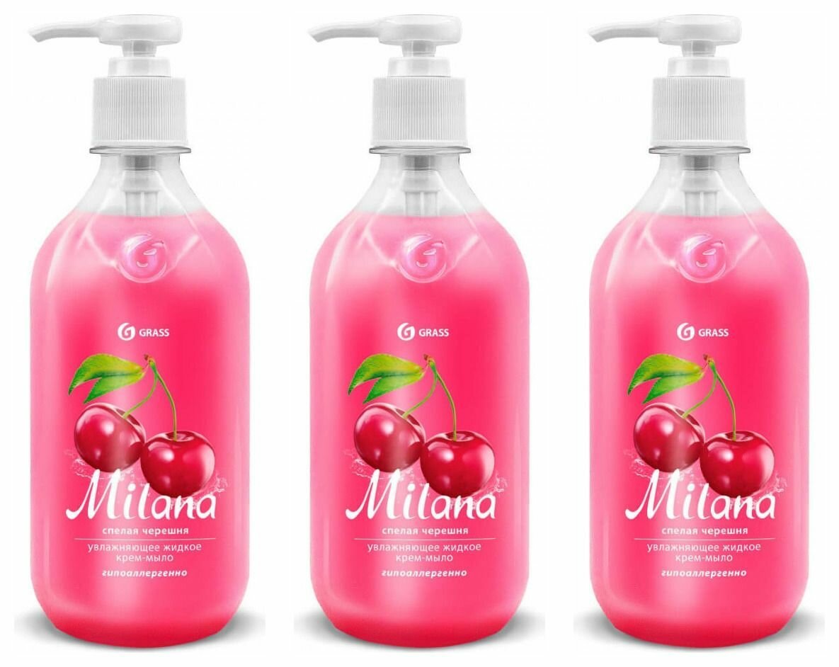 Набор из 3 штук Grass крем мыло жидкое увлажняющее milana спелая черешня флакон 1000 мл