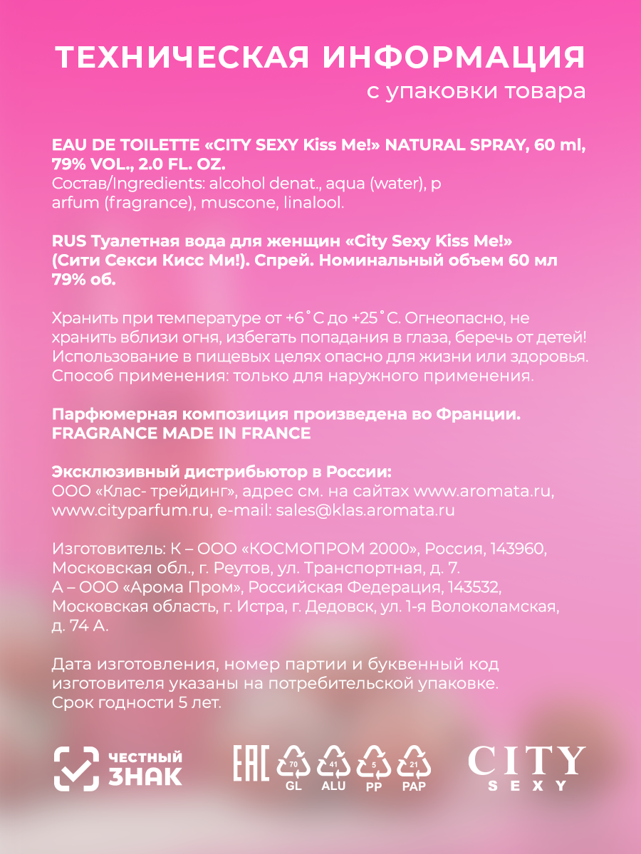Парфюмерная вода City Parfum City Sexy KISS ME! edt 60ml с феромонами