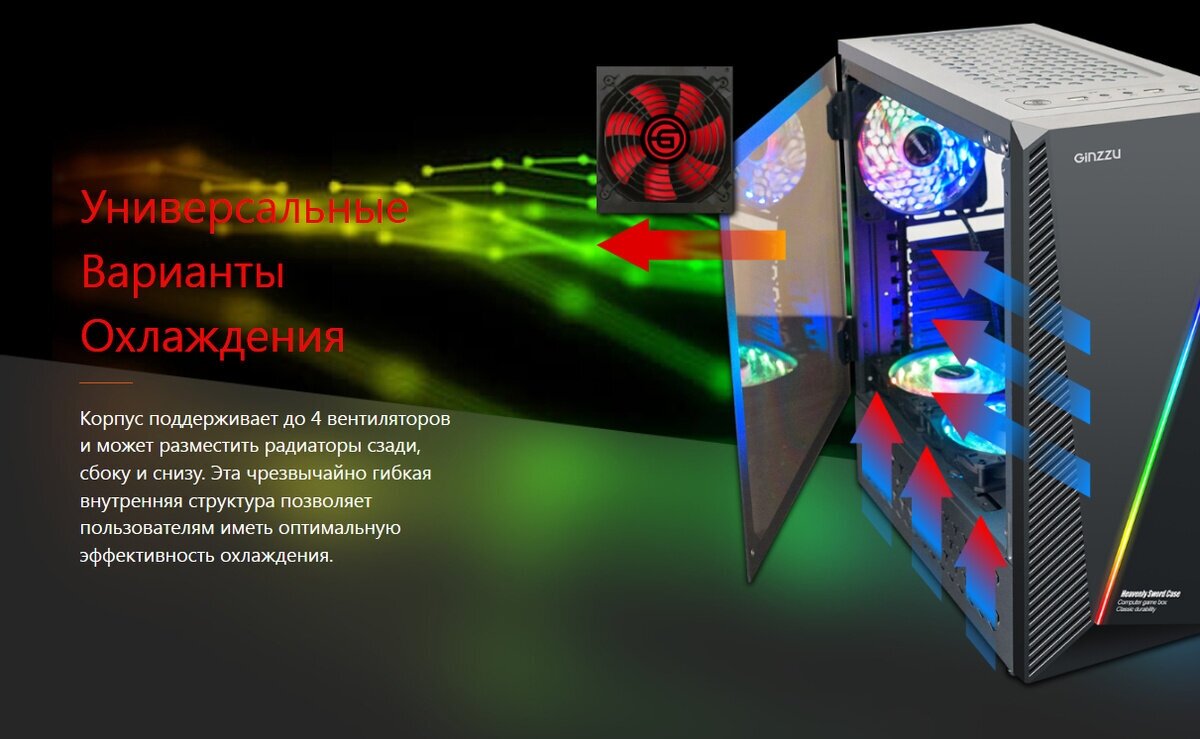СохранитьGinzzu корпус SL200 FAN Rear 12CM LED 1 USB 3.0,1 USB 2.0,AU Window w o PSU интересное: