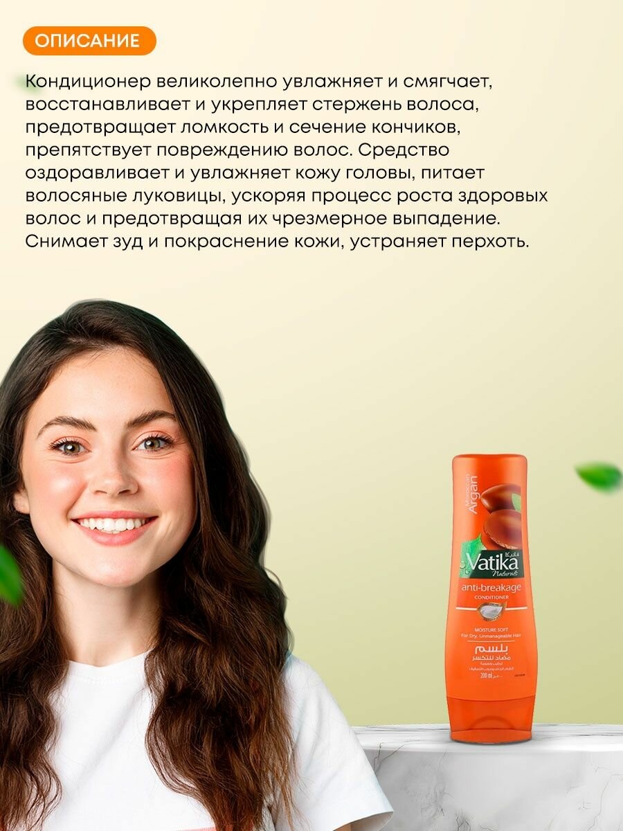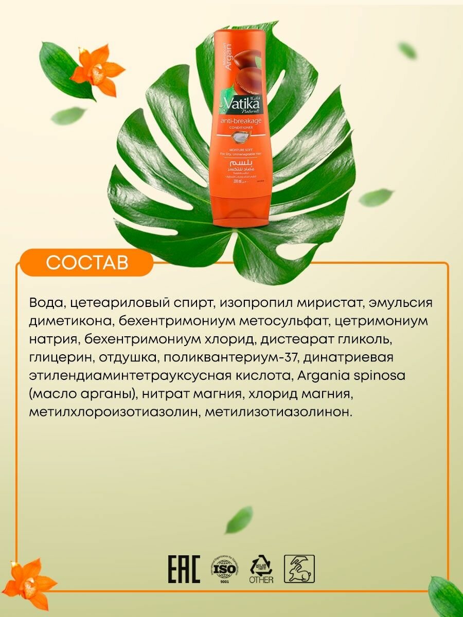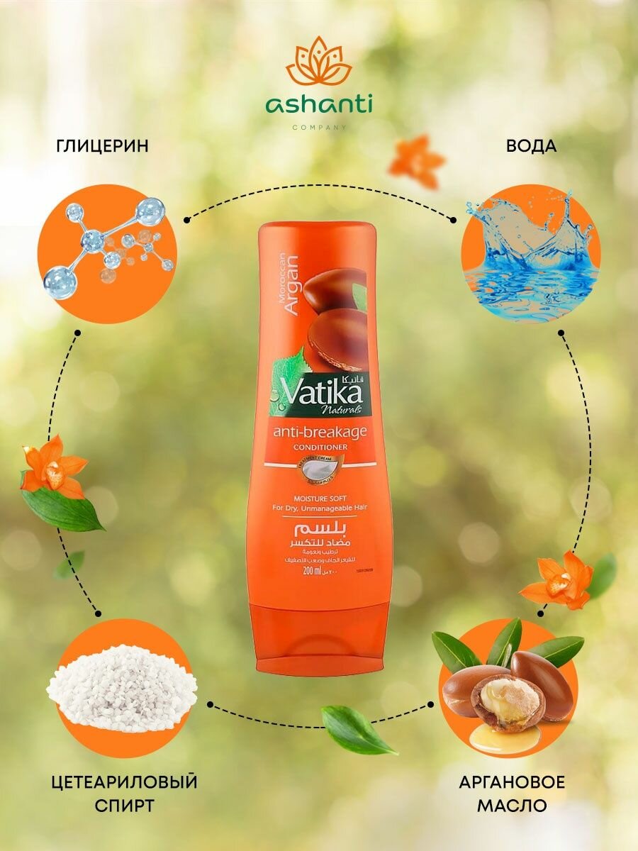 Кондиционер Дабур Ватика Марокканская Аргана (Moroccan Argan Anti-breakage Vatika) против ломкости волос, 200 мл