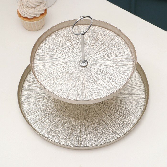 Блюдо 2-х ярусное, "Мерцание ночи", d 21 / 28 см, цвет серебряный, форма круглая