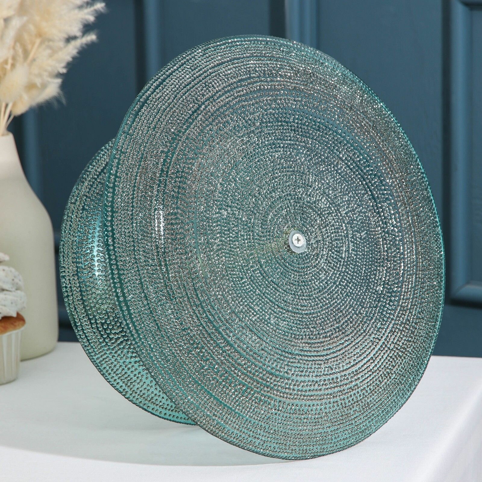 Блюдо 2-х ярусное, "Мерцание ночи", d 21 / 28 см, цвет серебряный, форма круглая