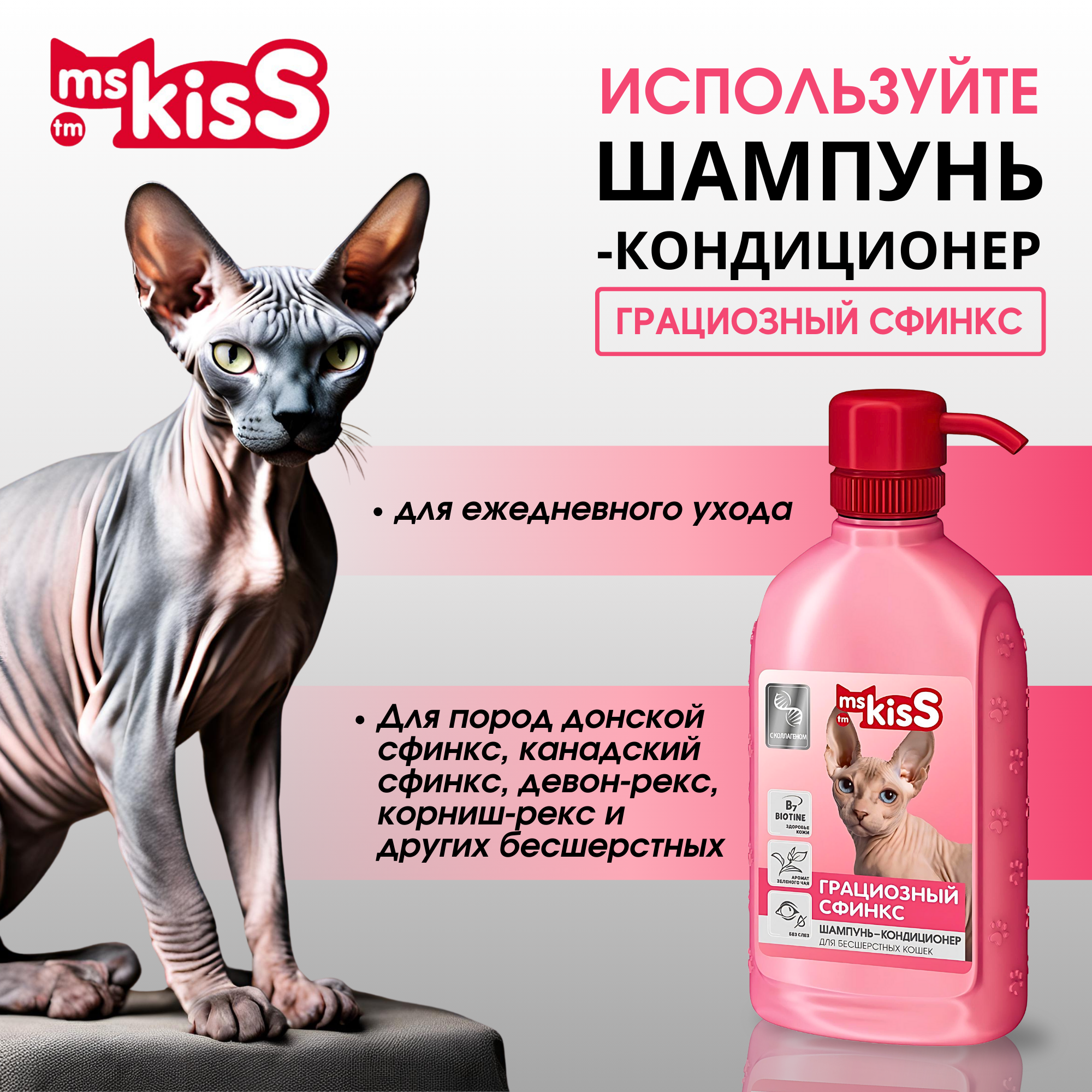 Шампунь-кондиционер Ms.kiss Грациозный сфинкс для кошек бесшерстных пород, 200 мл
