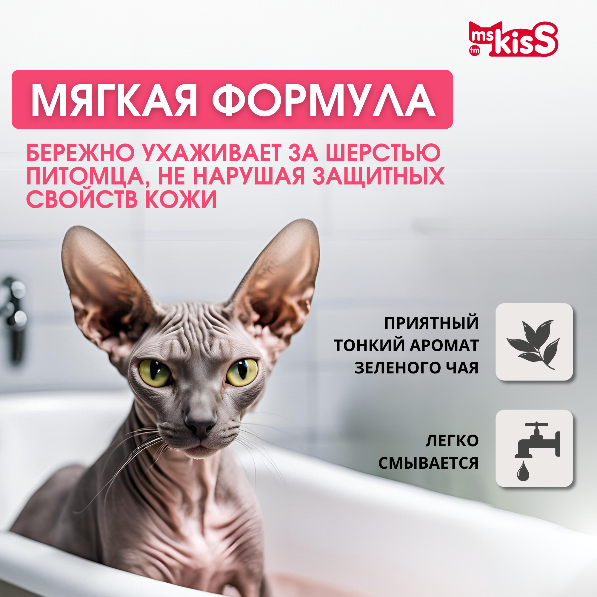 Ms.KISS грациозный сфинкс шампунь-кондиционер для бесшерстных кошек (200 мл)