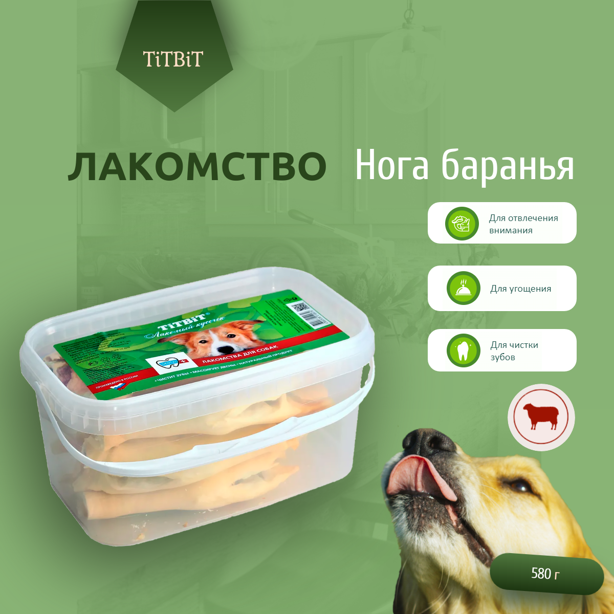 Лакомство для собак Titbit / Титбит Нога баранья для всех пород, косточки с кожей 580г, 1шт. / снеки для животных