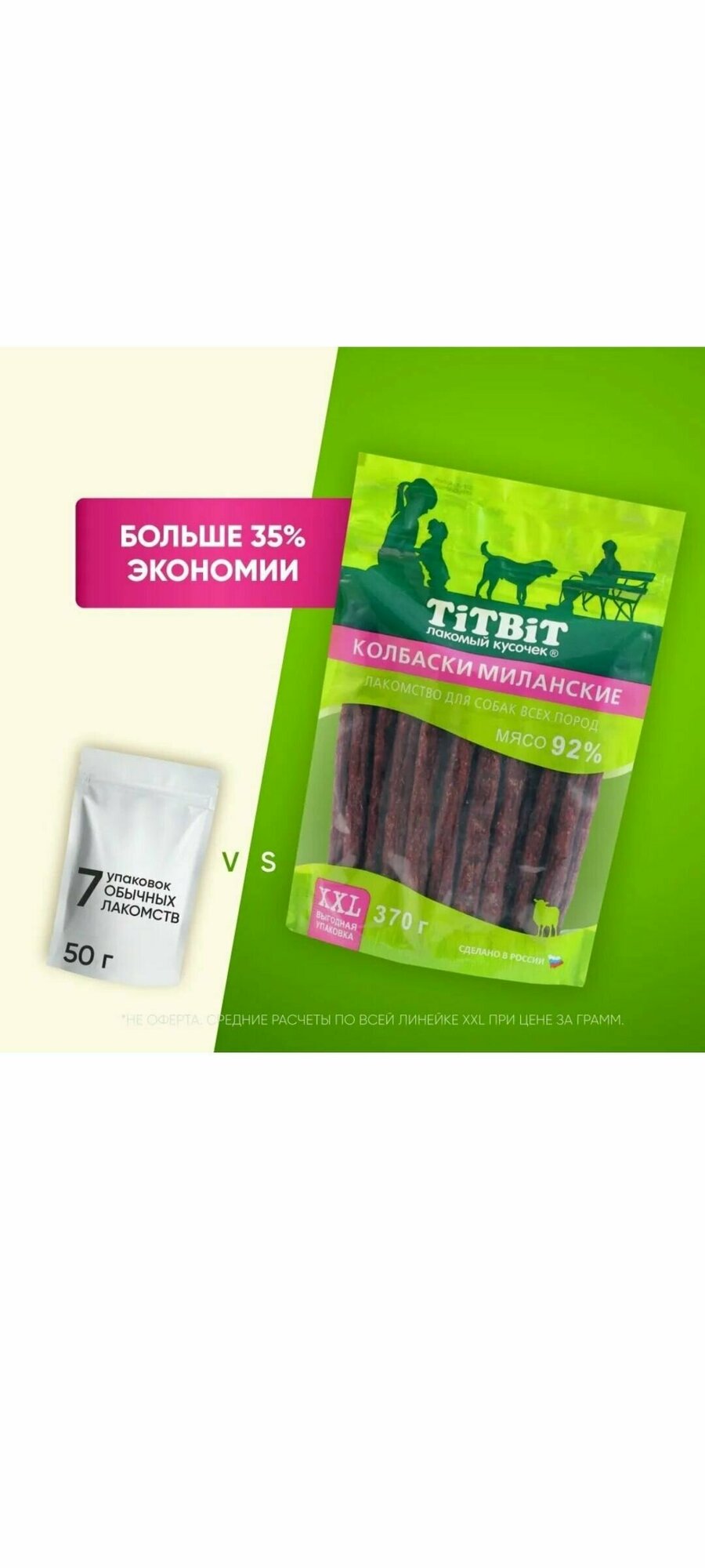 TiTBiT Выгодная упаковка XXL Колбаски Миланские для собак всех пород 0,370 кг 61033 (1 шт)