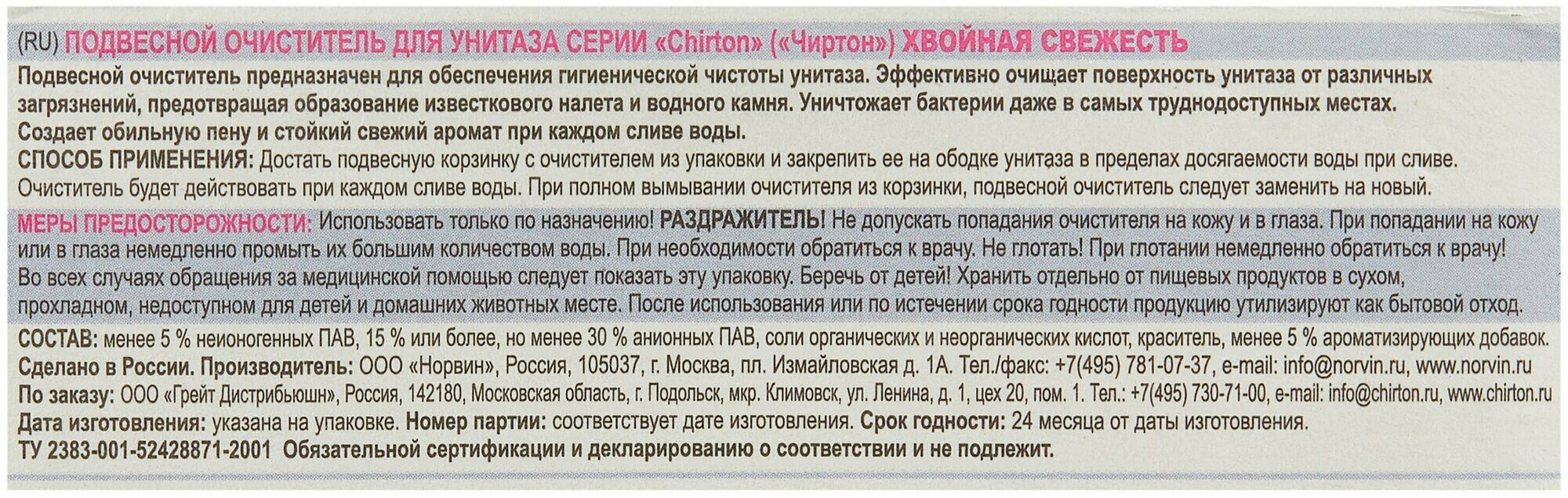 Подвесной очиститель для унитаза Чиртон Хвойная свежесть (шарики) 45гр чиртон(АН3!)