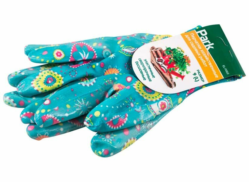 Перчатки Park хозяйственные для садовых работ EL-F002, 1 пара, размер L, цвет голубой