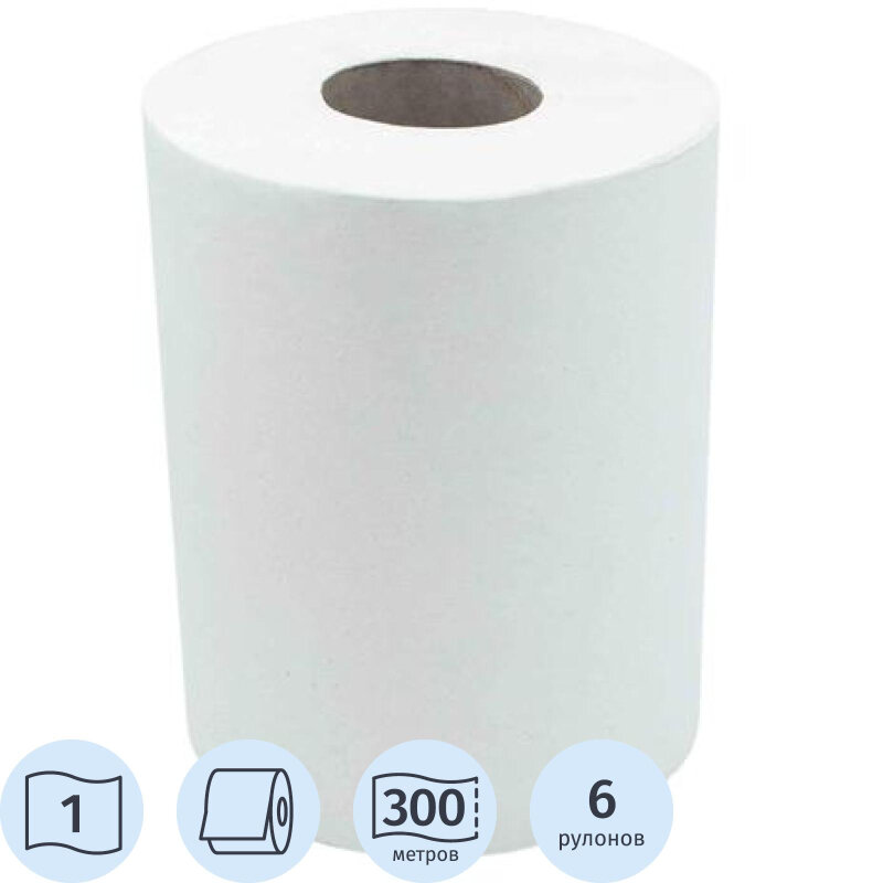 Полотенца бумажные в рулонах с центральной вытяжкой Luscan Professional 1-слойные 6 рулонов по 300 метров (арт.486353)